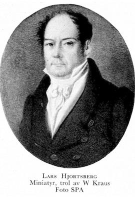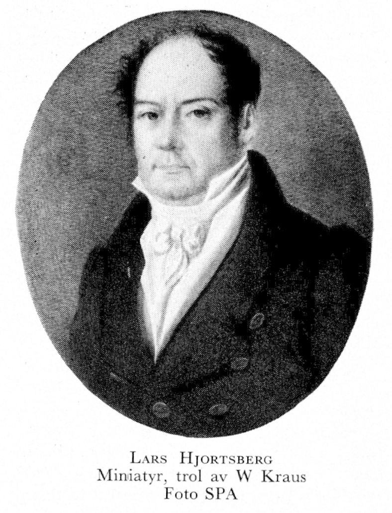 2 Hjortsberg, Lars, sonson till H 1, f 23 nov 1772 i Sthlm, Jak, d 8 juli 1843 i Nyköping (enl db för Hovf, Sthlm). Föräldrar: appareilleuren Lars H o skådespelerskan Maria Lovisa Schützer. Elev vid K teaterns elevskola nov 78, anställd vid k franska teatertruppen 86, engagerad vid Ristells teater 87—88, förste aktör vid K teatrarna 88— 1 juli 34, ordningsman vid Dramatiska teatern 98—10, styresman där 10—12 o 16—27, hovsekr:s titel 11, andre departementschef vid K teatrarna 1 juli 34—1 juli 36, hovintendents titel 36. — SA:s stora medalj 23.