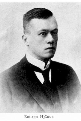 5 Hjärne, Erland, son till H 4, f 13 juli 1887 i Uppsala, d 26 april 1969 där. Mogenhetsex vid Uppsala h a l 31 maj 05, inskr vid UU 22 sept 05, FK 3 april 12, FL (statskunskap) 15 sept 15, FL (historia) 14 dec 18, eo tjänsteman vid ULA 9 aug 20—16 maj 24, amanuens vid UUB 1 aug 24—24 april 30 (tjl från 16 juli 26), tf amanuens vid UU:s myntkabinett 1 jan— 31 dec 25, amanuens där 1 jan 26—24 april 30, doc i hist vid UU 15 febr 30, prof där 25 april 30—1 aug 52. — LSkS 30, LHVU 31, fil hedersdr vid UU 5 nov 32, LGAA 48, LVHAA 49, LVS 50, jur hedersdr vid UU 31 jan 58.