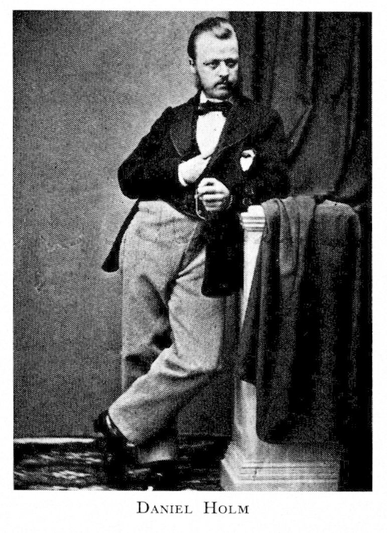 Holm, Per Daniel, f 11 sept 1835 i Malingsbo, Kopp, d 7 aug 1903 i Sthlm, Jak o Joh. Föräldrar: kh Alexander H o Kristina Elisabet Askergren. Elev vid Teknologiska inst i Sthlm 52, utex därifrån som byggnadsingenjör 55, maskinritare vid Köping-Hults järnvägsstation i Örebro 56—58, tecknare vid Riksmus 56—62, elev vid FrKA 57—62, agreé där 63, resor till Tyskland 64—67, uppehöll E Berghs professur vid FrKA 73—81, prof i landskapsteckn o måln där 16 dec 81—01, konservator vid Nat:mus 81—01, i Konstfören:s (Sveriges allm konstfören) gransknmämnd 82, i dess styr 85, förestod dess utställn:sektion i Sthlm från 87. — LFrKA 71.