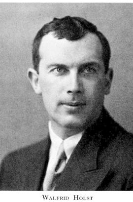 Holst, Walfrid, f 12 juni 1897 i Kristianstad, d 13 febr 1959 i Skövde. Föräldrar: köpmannen Nils Larsson H o Elna Bengtsson. Studentex vid Kristianstads h a l 21 maj 15, inskr vid LU ht 15, FM där 30 maj 21, eo ämneslär vid Mora kommunala mellanskola läsåret 24—25, FL vid LU 14 dec 29, disp där 26 maj 31, FD där 30 maj 31, vik lektor vid Kalmar h a l läsåret 31—32, provårskurs vid h a l i Lund läsåret 32—33, lektor i modersmålet o hist med samhällslära vid h a l i Eksjö 29 sept 33, i hist med samhällslära o geografi vid h a l i Skövde från 6 juni 41. — LSkS 56. — Ogift.
