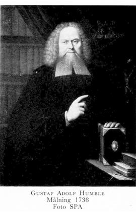 Humble, Gustaf Adolf, f 20 febr 1674 i Jönköping, d 28 nov 1741 på Kråkenäs, Gårdsby, Kron. Föräldrar: assessor Peter H o Elisabet Brunsberg. Inskr i Visingsö skola 4 nov 79, vid UU 5 nov 87, vid univ i Dorpat sept 90, mag där 94, studieresa i Tyskland 95—97, prästv 8 maj 00, kh i Eskilstuna, Klosters o Fors förs 21 juni 00, kontraktsprost 18 juli 00, hovpredikant hos änkedrottn Hedvig Eleonora 09, preses i hovkonsistoriet 28 aug 11—10 juni 19, teol dr i Uppsala 20 mars 19, superintendent vid amiralitetet o kh i Karlskrona 14 april 19, deltog i riksdagarna 26—27, 31, 34 o 38—39, biskop i Växjö 3 mars 30.