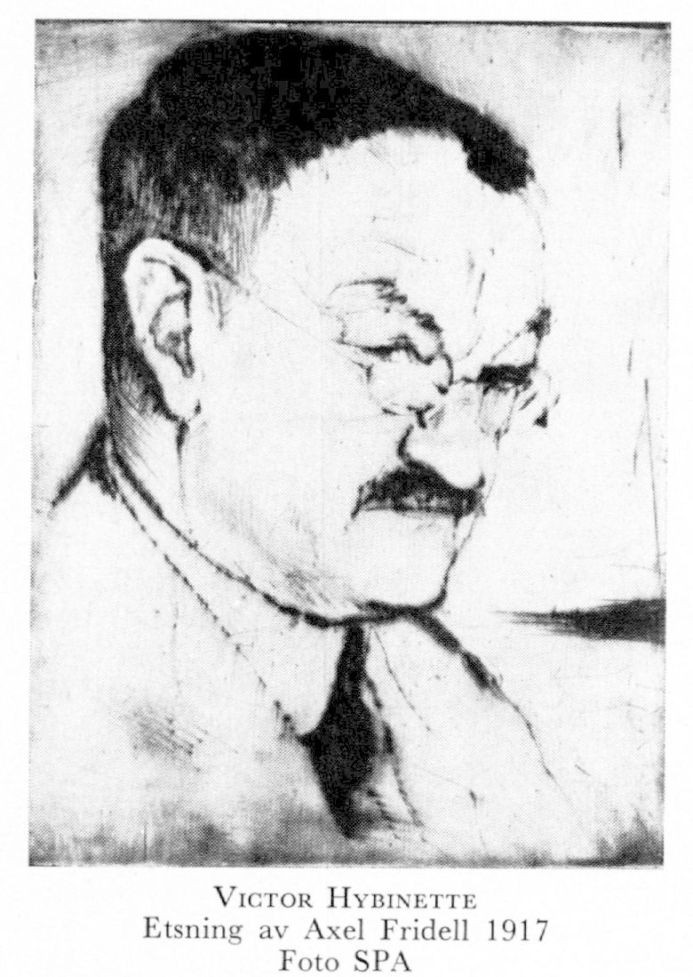 1 Hybinette, Victor Noach, f 18 april 1867 i Falun, d 7 sept 1937 i Merano, Italien. Föräldrar: smeden o hovslagaren Johan Samuel H o Ulrika Forsström. Elev vid hal i Falun 76—84, vid Chalmers tekn läroanst 84—87, avgångsex som mekanisk o kemisk ing 87, assistent vid Falu kopparverk 87—88, guld- o nickelmetallurg vid Os-Hommelviks kopparverk, Trondheim, Norge, 88—91, nickelmetallurg vid Orford Copper co, Bayonne, N J, USA, 92—02, chef för nickelavd där 95—97, för hela nickel- o kopparverket där 97—02, chefsmetallurg vid International Nickel co, N Y, USA, 02—05, byggde koppar-, nickel- o koboltverk för North American Lead co, Fredrickstown, Mo, USA, 06—08, dir i A/S Kristiansands nikkelraffineringsverk, Norge, 09—22, v president i British-America Nickel co, Kanada, 14—24, dir i ab Outokumpu koppar — Outokummun kupari oy, Finland, 17—21, chef för nickelverk i Ottawa, Kanada, 20— 24, konsult ing i International Nickel co, NY, USA, 24—37, v president i Sheet Aluminium co, Wilmington, Del, USA, 27—31, president för Hybnickel Alloys co, Wilmington, 31—37, president för Nicroalumin co, Jackson, Mich, USA, 31—37.