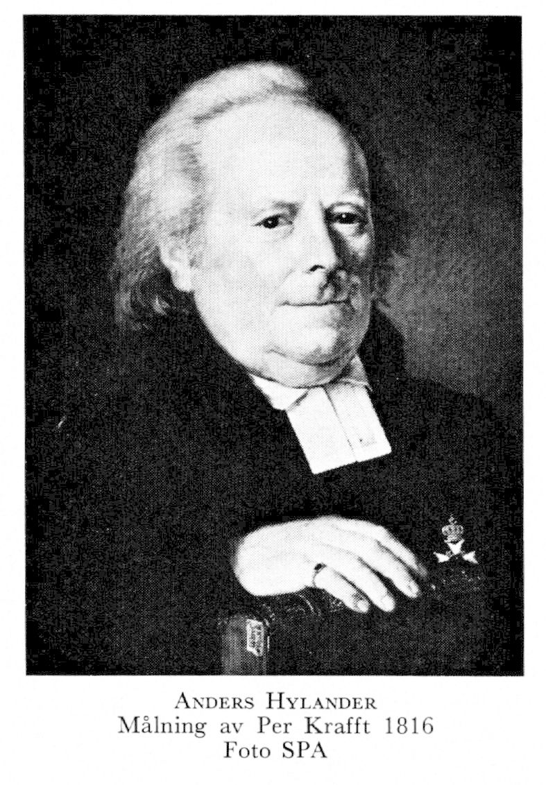 Hylander, Anders, f 23 febr 1750 i Gärdhem, Älvsb, d 1 juni 1830 i Lund. Föräldrar: komministern Sven H o Christina Davidsson. Skolstudier i Skara 65—71, inskr vid UU 6 mars 71, vid LU okt 73, FK 11 dec 73, mag ultimus 23 juni 75, doc i grekiska o österländska språk 31 maj 76, tf prof i samma ämnen okt 80—dec 81, adjunkt 13 febr 82, allt vid LU, prof:s n h o v 25 april 90, prästv 16 dec 90, eo teol prof vid LU 21 nov 92, kh i Hardeberga o Sandby prebendeförs, Malm, 15 maj 95, disp pro gradu o TD vid LU 18 april 96, honorarieprost 6 april 96, eo teol prof vid LU 18 sept 98, praeses vid prästmötet i Lund 99, 3:e ord teol prof där o kh i Vallkärra o Stångby, Malm, 20 febr 06, 2:e ord teol prof o kh i Uppåkra o Flackarp, Malm, 08.