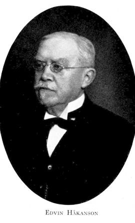 1 Håkanson, Anders Edvin, f 10 dec 1859 i Kinnarumma, Älvsb, d 24 jan 1933 i Sthlm, Engelbr. Föräldrar: disponenten Anders H o Edla Erikson. Mogenhetsex vid h allm latinlärov i Gbg vt 79, elev vid KTH 6 sept 79, avgångsex 9 juni 83, elev vid Höhere Webschule i Mülheim am Rhein 83—84, praktik vid väveri i Meerane, Tyskland, 84, vid bomullsspinnerier i Chemnitz 84—85, i Rheydt 85—86, vid textilmaskinfabrik i Accrington, England, 86—87, tekn ledare av Rydboholms ab:s spinneri o väveri, Kinnarumma, 87—25, VD o disp för Kungsfors spinneriab, Örby, 98—14, led av Älvsb läns landsting 03—08 o 16—22, av FK 04—10, ordf i s Älvsb läns handels- o industrikammare 05-—09, VD o led av styr för Varberg—Borås järnvägsab 08—09, ordf i styr för Rydahls manufakturab, Seglora, 12—21 (led av styr 92—21), VD för Rydboholms ab 12—25, ordf i styr 12—13 o 19—30 (led av styr 94—30), ordf i Älvsb läns s hushålln:sällsk 22—25, i Sv bomullsfabrikantfören o på internationella bomullskongressen i Sthlm 22.
