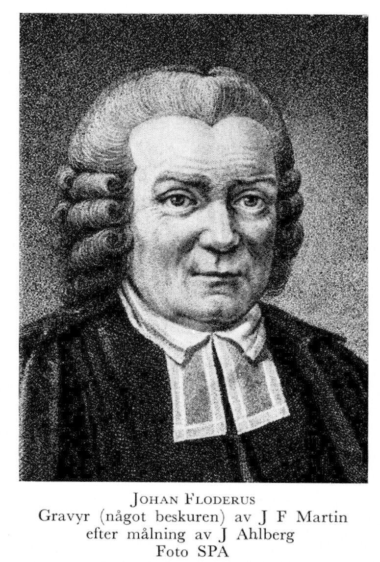 1 Floderus, Johan, f 6 okt 1721 i Växjö, f 28 april 1789 i Gamla Uppsala. Föräldrar: prosten Petrus F o Helena Catharina Cavallia. Elev vid trivialskolan i Växjö 1731, student vid Uppsala univ 2 aug 1738, kurator i Smålands nation 1749–50, 1753–54, 1756–57, disp 1742, fil mag 22 juni 1743, doc i grekiska språket o litteraturen vid Uppsala univ 13 dec 1752, akademiadj i vältalighet, poesi o historia 4 nov 1757, prof i nämnda ämnen 28 jan 1762, led av bibelkommissionen 1773, univ:s rektor 1770 o 1778, prästv 1779, kh i Gamla Uppsala prebendepastorat 12 juni s å, prost s å, erhöll 3:e förslagsrummet till biskop i Linköping 1786. LHA 1786.