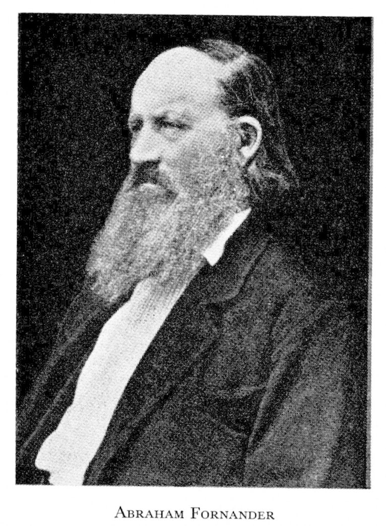 1 Fornander, Abraham, f 4 nov 1812 i Gärdslösa sn (Kalm), d 1 nov 1887 i Honolulu, Hawaii. Föräldrar: hovpredikanten o prosten teol dr Anders F o Karin Foenander. Inskr v Uppsala univ 30 okt 1828, v Lunds univ 11 okt 1830, gick till sjöss 1831, ankom 1838 till Hawaii, ägnade sig åt valfångst, bosatte sig på Hawaii 1842, bedrev kaffeodling där 1842–47 samt utförde lantmäteriarbeten till 1849, tidningsutgivare 1852–63, distriktsdomare på Maui 1864, generalinspektör för skolväsendet på Hawaii 1865, ånyo domare på Maui 1870, led av Hawaiis högsta domstol 1886. – Korresp led av California Academy of Sciences 1879 o av Sv sällskapet för antropologi o geografi 1880, RNO 1886, innehade även uti ordnar.