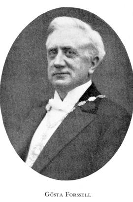 3 Forssell, Carl Gustaf (Gösta) Abrahamsson, brorson till F 2, f 2 mars 1876 på Vassbo i Aspeboda (Kopp), d 13 nov 1950 i Danderyd (Sth). Föräldrar: intendenten Carl Abraham F o Maria Teresia Trahn. Mogenhetsex vid N latinlärov i Sthlm 17 maj 1895, med fil ex i Uppsala 15 sept 1896, med kand i Sthlm 12 mars 1902, med lic där 28 nov 1906, med dr 31 maj 1913. Amanuens vid histologiska institutionen vid Karol inst sept 1897–aug 1898, amanuens vid dr T Stenbecks röntgeninst 1 juni 1899–30 aug 1900, e amanuens vid röntgeninst vid Akad sjukhuset i Uppsala vt 1902, eo underläk vid med kliniken vid Serafimerlasarettet 1 maj–12 aug 1906, föreståndare för kir klinikens röntgenavd vid Serafimerlasarettet 1906, förest för dess röntgeninst från 1907, överläk vid Radiumhemmet 1 juli 1910–31 dec 1926, erhöll personlig professur i medicinsk radiologi vid Karol inst 14 juni 1916 (riksdagsbeslut), ord prof 27 april 1927 (riksdagsbeslut), prof i röntgendiagnostik 1 juli 1936–1941. – Sekr i styrelsen för Cancerfören i Sthlm 1910–26, dess ordf från 1927, ordf i Sv Radiologförb 1923–27, ordf i Sv fören för medicinsk radiologi 1919–33, ordf i Nord fören för medicinsk radiologi 1922–23, president för internat radiologkommittén 1925–28, president för 2:a internat radiologkongressen 1928, led av styr för Sv sällsk för medicinsk forskning från 1919, ordf i styr för Saltsjöbadens bad- o kuranstalt från 1924, medl Arméförvaltn:s sjukvårdsstyr:s vetenskapl råd från 1918, av Medicinalstyr:s vetenskapl råd från 1926, av kommittén för utarb av förslag ang användn av Konung Gustaf V:s jubileumsfond 1928–29, led av styr för denna fond från 1929, led av Karol sjukhusets byggnadskommitté 1931, medl av la Commission Internationale de Coopération Intellectuelle de la Société des Nations från s å. – RNO 1918, LVA 1923, KVO2kl 1924, LVVS 1925, fil hedersdr i Uppsala 16 sept 1927, KNO1kl 1931, Iqml 12 storl 1938, S:t Eriksmedaljen 1940, KmstkNO 1941, LKrVA 1942. – Med hedersdr i Cambridge 1925, Köpenhamn o Kiel 1929, fil hedersdr i Zürich 1934, jur hedersdr i Washington 1937, med hedersdr i Hamburg o Oslo 1938, led av 31 utl lärda sällskap, innehade även utl ordnar.