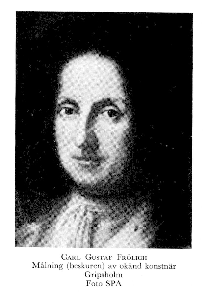1 Frölich, Carl Gustaf, f 1637, d trol 4 mars 1714 i Sthlm (själaringn i Nik o Ty 5 mars). Föräldrar: översten Hans Christoffer F o Elisabet v Plessen. Kornett vid överste Wolmar Wrangels kav:reg 21 aug 1665, kaptenlöjtn vid Kalmar reg 26 febr 1670, kapten vid Jämtlands reg, major där 10 juli 1676, överstelöjtn:s titel o kommendant på Bohus fästning 30 sept s å, överstes titel 10 aug 1678, kommendant på Marstrand 23 okt 1679, natural sv adelsman 28 dec 1682, generalmajor av infanteriet 23 dec 1693, landsh över Västernorrland, Jämtland o Härjedalen s d, överste för Hälsinge reg 16 maj 1698, guvernör i Riga 10 mars 1700, generallöjtn av infanteriet s d, chef för Garnisonsreg i Riga, frih enl uppg 1700 (Marks v Würtemberg), i varje fall senast maj 1701 (Livonica), generalguvernör i Riga 7 april 1702, general av infanteriet 9 jan 1704, k råd o president i Dorpats hovrätt 27 dec 1705, greve 21 juni 1706 (Stiernman).