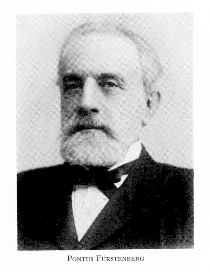 Fürstenberg, Pontus, f 5 okt 1827 i Gbg (Mosaiska), d 10 april 1902 där (ibid). Föräldrar: grosshandl Levy F o Rosa Warburg. Delägare i firman L Fürstenberg & Co, Gbg, 1853–81, burskap som handlande där 26 okt 1860, fullm i fabriksfören 1860–63 o 1868–73, led av handels- o sjöfartsnämnden 1873–84, av stadsfullm 1869–90, led av styr för Gbgs mus 1883–1902, led av ett flertal stynr o kommittéer i Gbg. Konstsamlare, donator. – RNO 1883, HedLFrKA 1885, KVO2kl 1891, LVVS 1898, KVO1kl 1900, fil hedersdr i Lund 31 maj s å.