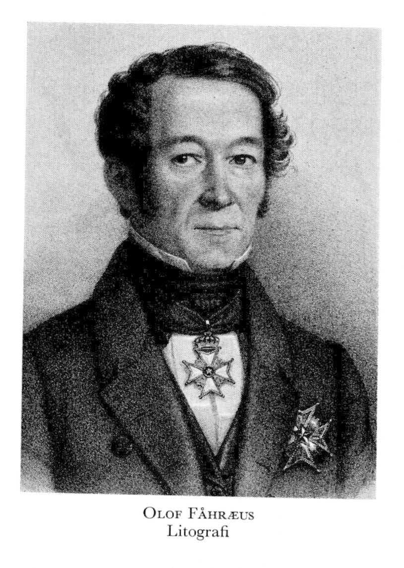 1 Fåhræus, Olof Immanuel, f 23 mars 1796 i Othem (Gotl), t 28 maj 1884 i Sthlm (Jak). Föräldrar: köpmannen Carl Niclas F o Margareta Catharina Sturtzenbecker. Inskr vid Uppsala univ 5 okt 1810, kansli-ex där 8 dec 1815, eo kanslist i kammarexp 19 jan 1816, kopist 18 mars 1817, eo kanslist i generaltulldir 21 juni s å, kanslist där 5 mars 1821, kanslist i kammarexp 8 maj s å, tf prot:sekr 14 juni 1822, sekr i den sv-norska handels- o sjöfartskommittén 1824, kommissarie vid generaltulldir:s kontrollkontor 2 dec s å, kamrerare vid dir:s revisionskontor 24 dec 1825, chef för v tulldistr 8 juni 1826–1840, förordn att utarbeta förslag till nytt tjänstereglemente för tullförvaltn 1830, led av kommittéerna för tullförfattn:nas överseende 1834 o 1839, av dansk-sv handels- o sjöfartskommittén 1837, statsråd 28 mars 1840, chef för civildep 16 maj s å–22 sept 1847, adl 11 jan 1842, bevistade riksdagarna 1844–66 (led av bl a statsutsk 1850–60 o 1865–66), led av FK 1867–78 (statsutsk 1867, v talman 1868–72 o 1875), landsh i Gbgs o Bohus län 23 sept 1847–6 maj 1864, ordf i riksbanksfullm 4 maj 1867–1872. – LVVS 1831, RNO 1832, LVA 1840, HedLVVS s å, KmstkNO 1843, HedLVS 1845, HedLLA 1848, RoKKMO 1864, HedLVHAA 1870, fil hedersdr vid Uppsala univ 6 sept 1877, HedLFS 1878, led av utl lärda sällsk.