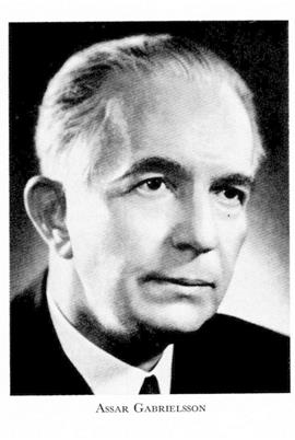 Gabrielsson, Assar Thorvald Natanael, f 13 aug 1891 i Korsberga (Skar), d 28 maj 1962 i Gbg (Vasa). Föräldrar: förvaltaren Gabriel Nathanael G o Anna Helmina Larsson. Mogenhetsex vid N latinlärov i Sthlm 1909, studier vid Handelshögskolan där, civilekonom där 14 okt 1911, kanslist o stenograf i AK 1912–16, anställd vid ab Sv kullagerfabriken (SKF) i Gbg 1916–20, verkst dir för SKF:s franska bolag i Paris (Société Anonyme de Roulements à billes) 1920–22, försäljn:dir vid SKF i Gbg 1923–26, verkst dir vid ab Volvo där 10 aug 1926–1956 (styr:led 1926, ordf från 1956), led av stadsfullm 1931–34, av arbetslöshetskommittén 1931–33, av polisnämnden 1932–38, allt i Gbg, administratör i Sv tändsticksab i Jönköping 1932, expert vid utredn om beredskapsåtgärder till skydd för den inhemska industrin 1933–34, led av 1934 års vägtrafiksakk 1934–35, av kommissionen för ekon försvarsberedskap 1937–39, av soc försvarsberedskapskommittén 1939–41, av handelskammaren i Gbg 1939–61, av styr för Handelshögskolan där från 1944, av styr för Skandinaviska kreditab 1945–56, av järnvägsrådet 1947, världspresident i Comité International de l'Organisation Scientifique 1947–51, ordf i styr för ab Götaverken 1957. – RNO 1932, KVO2kl 1935, LIVA 1945, KVO1kl 1952, LVVS 1956, HedLIVA s å, KmstkNO 1957, ekon hedersdr vid Handelshögskolan i Sthlm 1959.