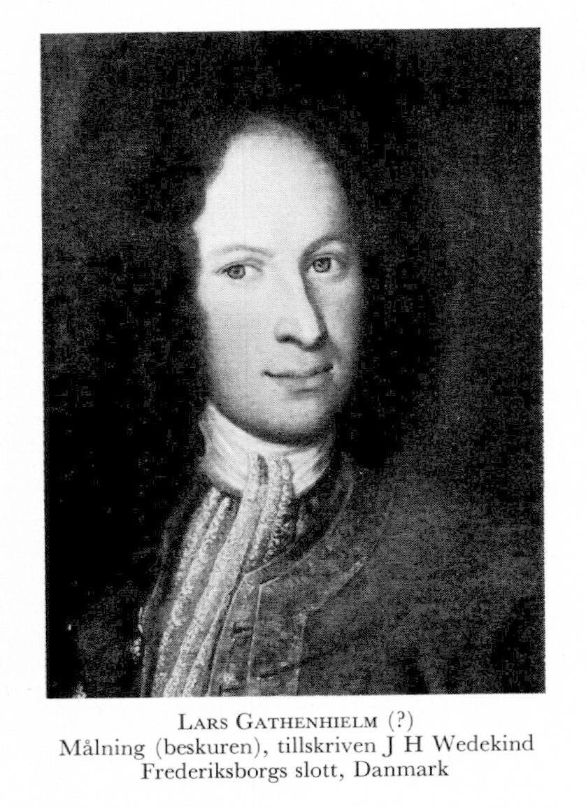 2 Gathenhielm, Lars (före adl Gathe), bror till G 1, f 30 nov 1689 på gården Gatan, Onsala (Hall), d 25 april 1718 i Gbg (Domk). Kaparkapten o kaparredare i Gbg från 1710, adl 29 dec 1715, kommendör 15 jan 1717.