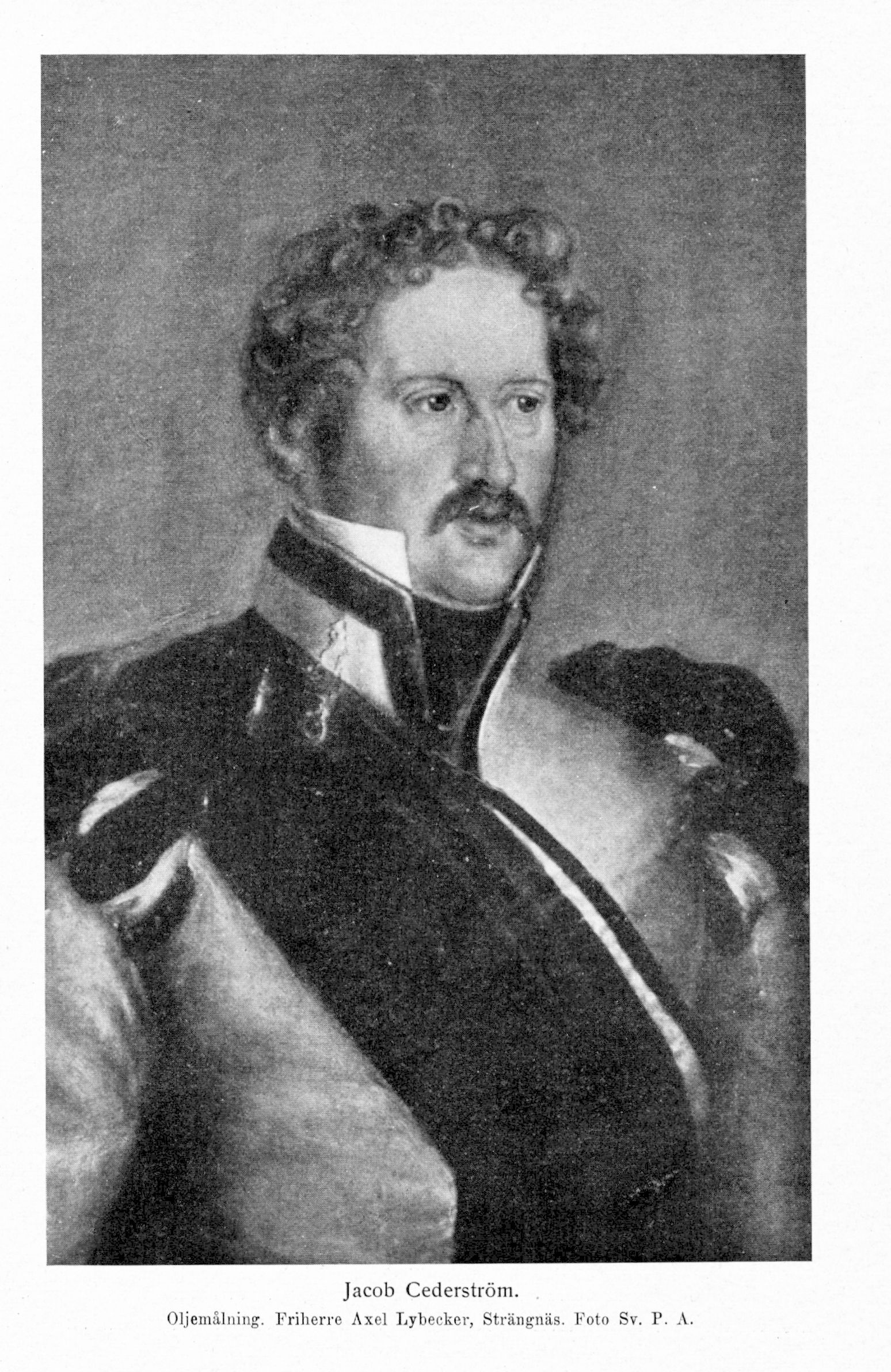 8. Jacob Cederström, sonson till C. 1, kusin till C. 2, 4, 5 och 6, f. 21 jan. 1782 i Stockholm, d 9 juli 1857 på Tindered i Västra Eds socken. Föräldrar: kaptenen friherre Anders Cederström och Hedvig Antoinetta von Mevius. Erhöll undervisning dels enskilt, dels i Uppsala. Underofficer vid Västmanlands regemente; fänrik vid Svea livgarde 29 jan. 1788; inträdde i tjänstgöring därstädes 1797; erhöll fänriks lön 19 dec. 1802; löjtnant 6 maj 1805; beordrades 24 okt. 1805 till tjänstgöring i Pommern vid Svea livgardes jägarbataljon; tjänstgjorde under 1808 års krig i västra arméns högra flygel men blev strax i början av fälttåget svårt sårad; bevistade samtliga riksdagar 1809—51 och var bl. a. ledamot av bankoutskottet 1809 och 1847—48, av konstitutionsutskottet 1810 i Örebro, 1815 samt 1834—35 (ordförande), av nämnden för val av tronföljare 1810, av statsutskottet 1817 och tre veckor 1848, av allmänna besvärs- och ekonomiutskottet 1823, 1828 —30, av förstärkt konstitutionsutskott 1823, av expeditionsutskottet 1828—30, av förstärkt bankoutskott 1840—41 och av opinionsnämnden 1844—45 samt elektor vid ombudsmansvalen 1844—45 och 1847—48; major i armén och överadjutant 29 juni 1809; stabskapten 2 dec. 1809; riksbanksfullmäktig 15 febr.—okt. 1810; överadjutant hos tf. militärbefälhavaren på Gotland Rudolf Cederström 1810—nov. 1811; erhöll tillstånd att avstå stabskaptens lön och beställning med rätt att kvarstå som kapten i livgardet 7 jan. 1812; deltog i de tyska och danska fälttågen 1813—14; överstelöjtnant i armén 22 okt. 1813 (erhöll konfirmationsfullmakt 7 juni 1814); deltog i norska fälttåget 1814; överste i armén (med bibehållande av, överadjutantskapet i generalstaben) 20 aug. 1814 (erhöll konfirmationsfullmakt 4 okt. 1814); erhöll avsked från livgardet 4 okt. 1814; statsrevisor 1815; landshövding och militärbefälhavare på Gotland 11 mars 1817; ordförande i Gotlands läns hushållningssällskap 1817—31; generaladjutant 11 maj 1818; generalmajor 11 maj 1826; tf. president i kammarkollegium 29 jan. 1831; president därstädes 14 maj 1831; ordförande i riksrätten 1841; fullmäktig i riksgäldskontoret 3 mars 1845—1 apr. 1848; erhöll avsked från presidentskapet 19 okt. 1847. KSO 1818; LKrVA 1819 (styresman 1845, 1846); KmstkSO 1829.