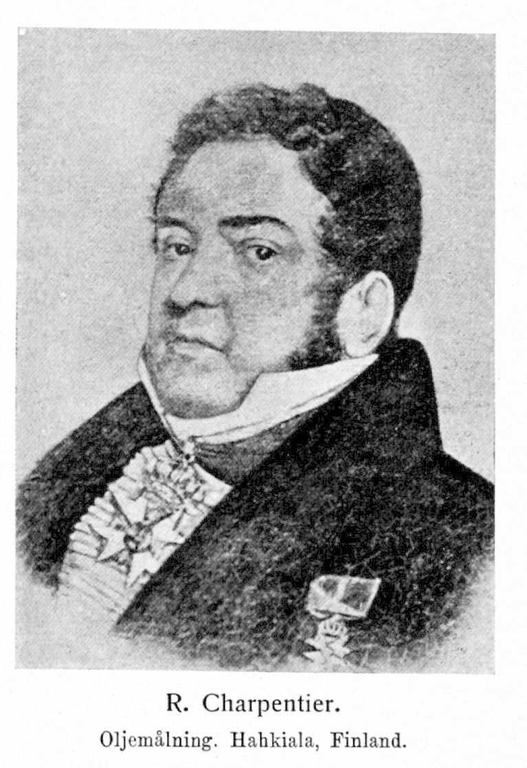 1. Robert Carl Charpentier, f. 13 okt. 1766 på Sveaborg, d 1 febr. 1830 å Hahkiala i Hauhö socken i Finland. Föräldrar: majoren Robert Gustav l'Eclaire, adlad och adopterad Charpentier, och Margareta Blomcreutz. Sergeant vid änkedrottningens livregemente 5 febr. 1775; underlöjtnant vid artilleriet 7 febr. 1779 (erhöll lön 28 aug. 1783); undergick artilleriexamen 2 maj 1780; stabslöjtnant vid artilleriet 22 juli 1788; stabsadjutant. 1 juli 1789; erhöll löjtnants lön 1 jan. 1791; stabskapten vid Svea artilleriregemente 10 nov. 1793 och vid finska artilleriregementet 23 juni 1794; kapten (med lön och kompani) vid sistnämnda regemente 6 maj 1802; major i armén 28 juni 1802 och i regementet 21 juli 1808; överstelöjtnant i armén 1 maj 1810; major i Vendes artilleriregemente 4 juni 1811; erhöll avsked med pension 20 dec. 1811; erhöll överstes titel 4 febr. 1812; immatrikulerades på finska riddarhuset 1818. RSO 1789; RmstkSO2kl 1808.