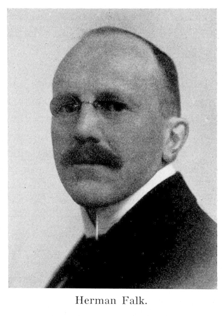 3. Herman Otto Falk, f. 26 juli 1869 på Risäter i Norra Råda sn (Värml.), d. 24 dec. 1919 i Stockholm (Engelbr.). Föräldrar: majoren Wilhelm Edvard Falk och Sofia Therese Laurell. Mogenhetsex. vid Karlstads h. a. läroverk 7 juni 1886; student vid Lunds univ. 4 maj 1888 och vid Uppsala univ. 21 sept. s. å.; jur. fil. ex. i Uppsala 27 maj 1889; jur.utr. kand. i Lund 15 dec. 1894; e. o. notarie i Svea hovrätt 26 mars 1895; tf. domhavande åren 1895–97 sammanlagt 5 mån. 7 dagar; tjänstgjorde vid protokollet i Svea hovrätt jan. 1898–okt. 1899; kanslist, notarie eller sekreterare hos olika riksdagsutskott 1898–1903 och 1910, därav 1902 och 1903 sekreterare hos lagutskottet samt 1910 andre sekreterare hos särskilda utskottet för behandling av arbetsavtalsfrågan; kanslist hos riksdagens revisorer 1898–1901; tjänstgjorde i Kammarkollegium juni 1899–nov. 1903; sekr. hos kommittén för utarbetande av förslag till lagstiftning om icke ekonomiska föreningar och fromma stiftelser okt. 1902–dec. 1903; sekr. hos kyrkolagsutskottet vid 1903 års kyrkomöte; förordnad 28 sept. 1903 till lärare i skogs- och jaktförfattningar samt ekonomi- och finansrätt ävensom 12 okt. 1905 till lärare i nationalekonomi och lagkunskap vid skogsinstitutet, men erhöll på ansökan entledigande 1 sept. 1908 från nämnda befattning i vad den avsåg nationalekonomi och 1 okt. 1914 från befattningen i övrigt; sekreterare i försäkringsinspektionen 13 nov. 1903–21 maj 1910; biträdde i Civildepartementet maj–okt. 1906 för utredning av frågan om arbetarförsäkring; var 3 nov. 1906–26 maj 1911 biträde i Justitiedepartementet vid behandling av skilda lagfrågor samt ledamot och sekreterare i olika kommittéer för lagstiftning; konstituerad revisionssekreterare 21 maj 1910 och ordinarie revisionssekreterare 22 dec. 1911; andre ledamot å Justitiedepartementets avdelning för lagärenden 26 maj 1911; ledamot av 1912 års riksdagsbibliotekskommitté; tf. byråchef för lagärenden i Justitiedepartementet 28 febr. 1914, ord. 11 dec. s. å.; häradshövding i Kinds och Redvägs domsaga 20 mars 1914; justitieombudsmannens suppleant 30 dec. s. å.; regeringsråd 3 mars 1916; konsultativt statsråd 30 mars–19 okt. 1917; förordnad att verkställa den år 1911 beslutade förberedande utredningen angående en rättegångsreform 30 okt. 1917 under den förut förordnade utredningsmannen, fd. justitierådet J. Hellners statsrådstid och 8 april 1919 tillsvidare i Hellners ställe; ordförande i den svenska sjölagstiftningskommittén 31 dec. 1918, vilket uppdrag frånträddes i anledning av nyssnämnda förordnande 8 april 1919; ordförande i processkommissionen 12 sept. 1919. RNO 1909; KNO1kl 1918; innehade även utländsk orden.