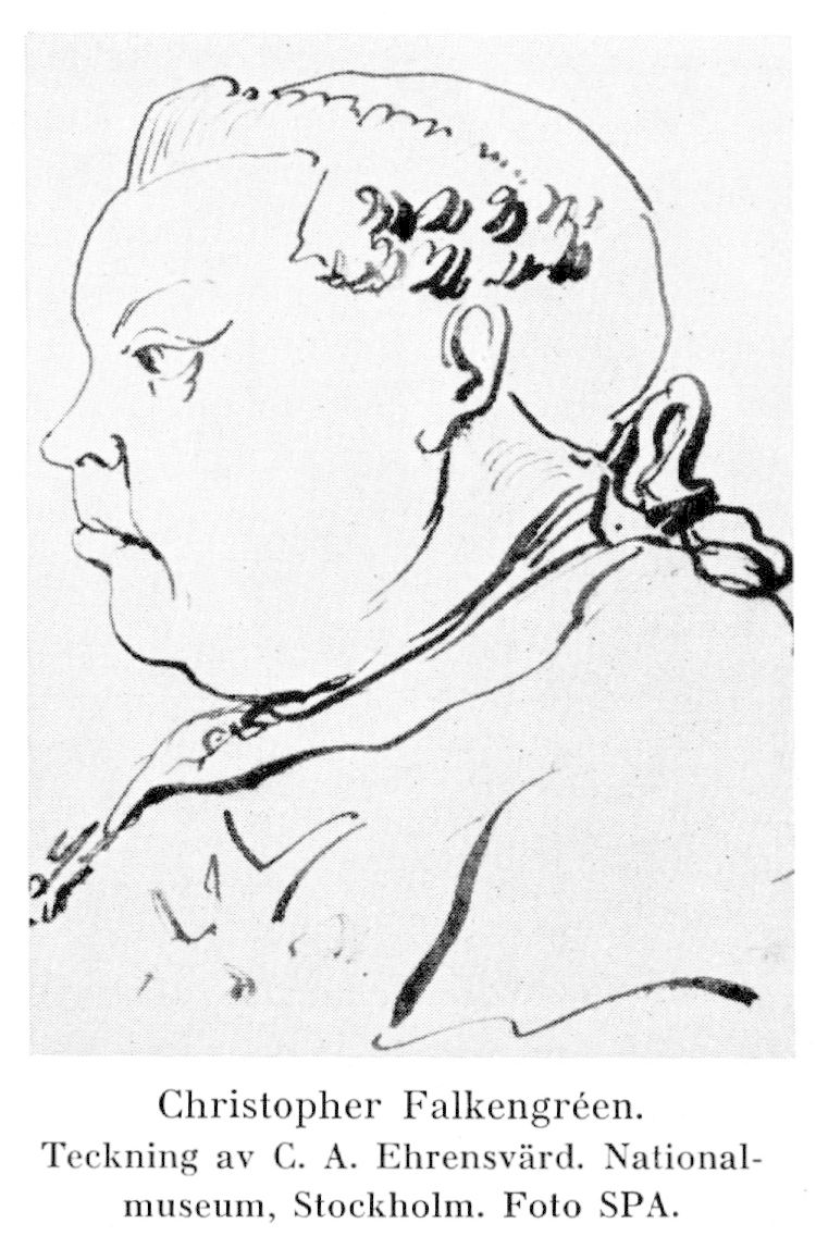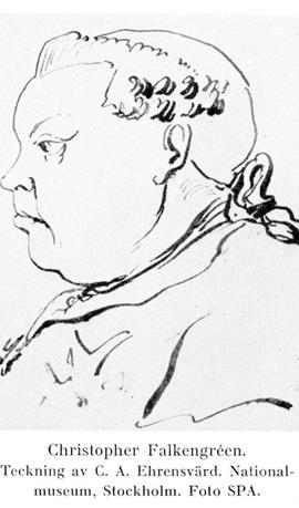 2. Christopher Falkengréen, son till föregående, f. 12 okt. 1722 i Karlskrona, d. 22 april 1789 i Stockholm (Ridd.). Kadett vid ett kofferdikarlskompani 1729; e. lärstyrman 1737; lärstyrman 29 april 1738; student vid Uppsala univ. 6 mars 1739–1744; medelstyrman 14 juli 1741; överstyrman 1742; löjtnant vid Göteborgs eskader 13 jan. s. å.; löjtnant vid amiralitetet 18 mars 1743; deltog i expedition till Pommern för att avhämta prinsessan Lovisa Ulrika 1744; i fransk örlogstjänst 1745; kaptenlöjtnant vid sv. amiralitetet 10 sept. 1746; kapten i fransk örlogstjänst 15 mars 1747; skeppskapten 6 okt. s. å.; vid franska armén i Flandern s. å.; chef på »Drottningholm» under expeditionen till Finland 1751; kommendörkapten 12 mars 1752; chef på »Uppland» under expeditionen till Marocko 1755; chef på »Prinsessan Lovisa Ulrika» under nordsjöexpeditionen 1757; chef för kadettkåren 13 jan. 1757; kommendör vid amiralitetet 16 aug. 1762; schoutbynacht 29 juli 1765; viceamiral och chef för galärflottan 22 juli 1767; ordförande i Konvojkommissariatet 1768–73; friherre 15 okt. 1771; riksråd 11 maj 1772; president i Amiralitetskollegium 27 nov. 1776. – Led. av ridderskapet och adeln vid riksdagarna 1760–62 (Sekreta utskottet), 1765–66 (Sekr. utsk.), 1769 och 1771; led. av Patriotiska sällskapet 1776, dess ordf. 18 maj s. å. – RSO 1748; LÖS 1771; KSO s. å.; KmstkSO 1773; LVA 1778 (preses 1781 och 1786); RoK av KMO s. å. – Ogift.