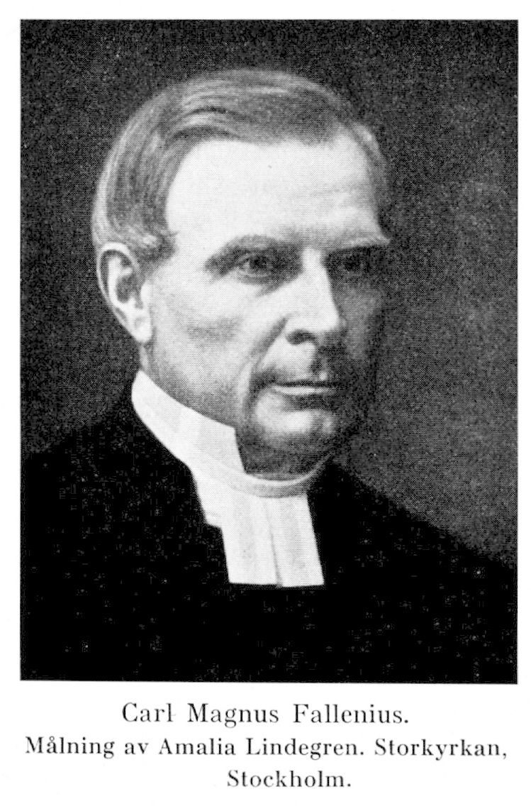 1. Carl Magnus Fallenius, f. 15 jan. 1815 i Västervik, d. 27 juni 1879 i Stockholm (Nik.). Föräldrar: handlanden, rådmannen Carl Magnus Fallenius och Margareta Johanna Berg. Skolstudier i Västervik och Linköping; student vid Uppsala univ. 9 okt. 1832; fil. mag. där 15 juni 1839; prästvigd 12 maj s. å. i Linköping; teol. kand. i Uppsala 12 dec. 1842; pastorsadjunkt i Västervik 24 febr. 1843; docent i dogmatik och moralteologi vid Uppsala univ. 5 aug. 1844; lektor i teologi vid Linköpings gymnasium 9 april 1847, tilltr. 1 maj 1848; rektor där ht. 1850–vt. 1858; tillika kyrkoherde i Skeda 15 febr. 1857; pastor primarius och kyrkoherde i Nikolai församling i Stockholm 16 april 1858, tilltr. 1 maj 1860, men ordinarie preses i Stockholms stads konsistorium redan 29 nov. 1859; led. av prästeståndet vid riksdagarna 1859–60, 1862–63 och 1865–66 (led. av expeditionsutskottet 1865–66); teol. dr 7 sept. 1860 i Uppsala; ordf. i Samfundet pro fide et christianismo 1860–72; led. av kyrkomötet 1868, 1873 och 1878. LNO 1859; KNO1kl 1867.
