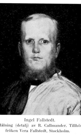Ingel Fallstedt, f. 20 okt. 1848 i Stockholm (Klara), d. 13 maj 1899 i Köpenhamn. Föräldrar: kamreraren i Riksbanken Hampus Ludvig Fallstedt och Maria Charlotta Wallander. Elev vid Nya elementarskolan i Stockholm 1860–66; lantbrukselev på Risberga (Sth.) 1866–67; elev på Åkerö (Söd.); elev vid Ultuna lantbruksinstitut 1867 och utexaminerad agronom 1869; bokhållare på Lövsta (Upps.), Stenhammar (Söd.) och Margretelund (Sth.); elev vid konstakademien 30 aug. 1872–1874; studier i München (1874–75), i Paris (1875–81) och i Italien; deltog i konstnärsmötet i Göteborg 1881 och i opponentrörelsen 1885; ledamot av Konstnärsförbundet 1886–96. Skulptör. Agreé i FrKA 1882; LFrKA 1897.