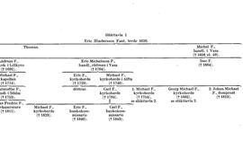 Den fortlevande släkten stammar från handlanden Michel F:s (d. 1658) son Eric Michelsson F. (f. omkr. 1640, d. 1704 i Vasa). Han var handlande och rådman i Vasa. Dennes äldre son, kyrkoherden i Pedersöre och Jakobstad fil. magister Eric F. (f. 1672, d. 1729), efterlämnade döttrar. Hans bror fil. magister Michael F. (f. 1676, d. 1746) var kyrkoherde i Malaks (Södra Österbotten) men flydde till Sverige hösten 1713, tog sig tillbaka julen s. å. men flydde i febr. 1714 för andra gången till Sverige, där släkten nu kvarblev. Själv blev han 1716 kyrkoherde i Alfta i södra Hälsingland (Gävleb.). Han var gift två gånger. Med Maria Wargentin, handlandedotter från Åbo, hade han bl. a. sönerna Carl F. (f. 1716, d. 1784), kyrkoherde i Knutsby och Faringe i Uppland samt prost – om vars gren se nedan – och magister Michael F. (F. 1), kyrkoherde i Eskilstuna, Kloster och Fors, känd som själasörjare och predikant. M. F:s son var den bekante historikern professor Eric Michael F. (F. 3). Kyrkoherden i Alfta Michael F. (d. 1746) hade även barn i sitt andra gifte med Elisabeth Helsingia, domprostdotter från Borgå, bl. a. sönerna magister Georg Michael F. (f. 1727, d. 1805), kyrkoherde i Väster Lövsta (Vm.) och prost, stamfader för släktens yngre linje (se nedan), och den framstående domprosten i Västerås och riksdagsmannen magister Johan Michael F. (F. 2), som var barnlös i sina två giften.
