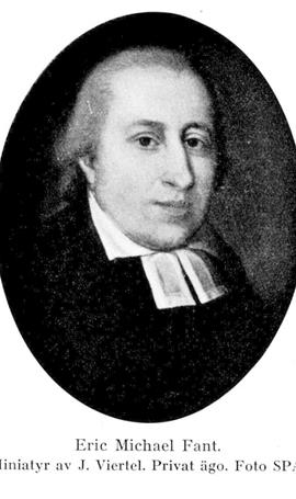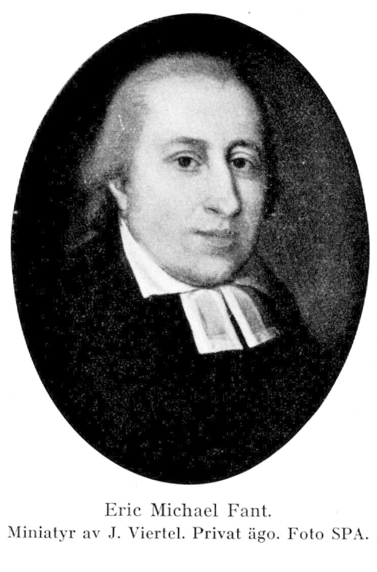 3. Eric Michael Fant, son till F. 1, f. 9 jan. 1754 i Eskilstuna, d. 24 (ej 23) okt. 1817 i Uppsala. Student vid Uppsala univ. 19 april 1764; disp. pro exercitio där 4 nov. 1775; fil. kandidat 7 febr. 1776; disp. pro gradu 22 maj s. å.; fil. magister primus 17 juni s. å.; e. o. amanuens vid Uppsala universitetsbibliotek 19 aug. s. å.; disp. för docentur 14 maj 1777; docent i romersk vältalighet vid Uppsala univ. 26 okt. s. å.; titulär e. o. vice bibliotekarie vid nämnda universitetsbibliotek 8 juli 1779; professor i historia vid Uppsala univ. 22 maj 1781, avsked 22 maj 1816; universitetets rektor 1788, 1797, 1805 och 1814; promotor 1797; kyrkoherde i Alunda och Morkarla regala pastorat (Upps.) 8 april 1788 (tilltr. 1789); prästvigd 9 maj 1789; prost s. d.; led. av domkapitlet i Uppsala 24 mars 1800; teol. doktor 1 nov. s. å.; preses vid prästmötet i Uppsala 1802; led. av kommittén för psalmbokens granskning 1793 och korresponderande ledamot av den den 14 nov. 1811 utsedda psalmbokskommittén; uppsatt på förslag till biskopsämbetet i Härnösand 1804 och i Linköping 1805; kallad till provpredikant för pastor primariusbefattningen vid Storkyrkan i Stockholm 1811, men avböjde. Led. av Uppfostringssällskapet 1 nov. 1782; LVS 1783; LHA 1793; LNO 1809; Korr LSkS 1815.
