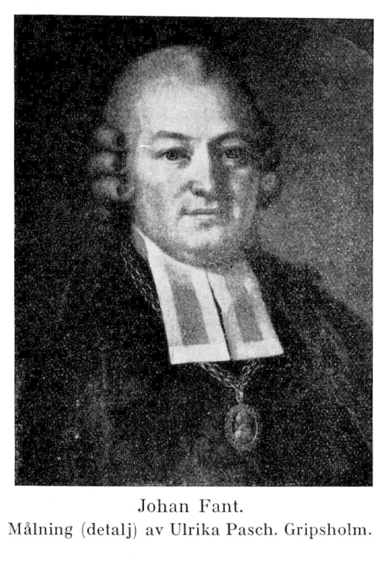2. Johan Michael Fant, halvbror till föregående, f. 14 okt. 1735 i Alfta sn (Gävleb.), d. 27 febr. 1813 i Leksands sn (Kopp.). Föräldrar: prosten Michael F. och Elisabeth Helsingia. Student vid Uppsala univ. 9 febr. 1751; fil. magister där 20 juni 1758; huspredikant hos riksrådet greve Carl Rudenschöld; prästvigd i Uppsala 29 juni 1760; komministeradjunkt vid Storkyrkoförs. i Stockholm i slutet av 1761; e. o. skvadronspredikant vid Adelsfanan 1763; svensk adjunkt vid finska församlingen i Stockholm 1765; predikant vid ambassaden för att avhämta kronprinsens brud prinsessan Sofia Magdalena från Danmark 1766; e. o. hovpredikant april 1767 med anciennitet från 21 sept. 1761; ordinarie hovpredikant och förste pastor vid Livdrabantkåren 18 mars 1768; tjänstgörande hovpredikant under riksdagen 1769; skeppspredikant hos storamiralen prins Karl s. å.; en av direktörerna för prästerskapets änke- och pupillkassa s. å.; teol. doktor i Uppsala 14 okt. 1772; domprost i Västerås 31 dec. s. å.; led. av riksdagens prästestånd 1778 (därvid en av faddrarna vid kronprinsens döpelseakt), 1786, 1789, 1792 och 1800 (led. av hemliga utskottet 1778, 1786, 1789, av bankoutskottet 1778, av bevillningsutskottet 1789); revisor vid Riksgäldskontoret 1796; kyrkoherde i Leksand (Kopp.) 6 dec. 1796 (tilltr. maj 1798); prost 29 dec. 1802; fil. jubelmagister i Uppsala 15 juni 1812. LNO 1789; LVVS 1804.