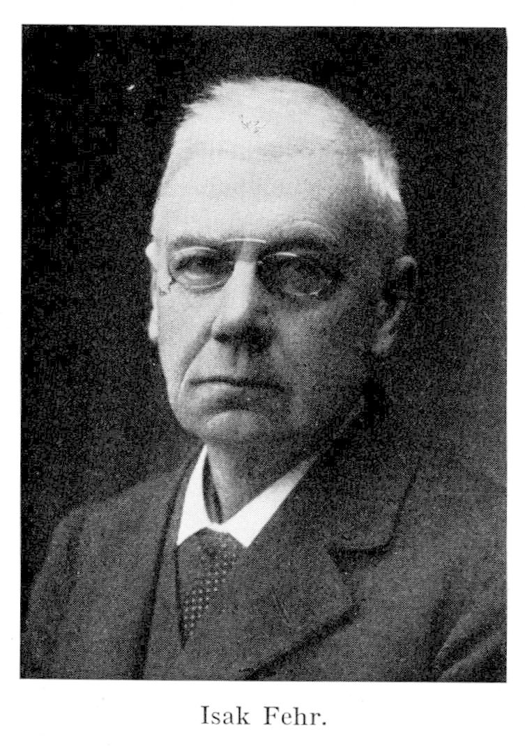 2. Isak Nikolaus Fehr, bror till föreg., f. 28 dec. 1850 i Stockholm (Maria), d. 17 sept. 1929 på Sotholmen, Västerhaninge sn (Sth.). Elev vid Klara skola i Stockholm 1860, vid Stockholms gymnasium ht. 1866; mogenhetsexamen där 17 maj 1870; student vid Uppsala univ. 19 sept. s. å.; fil. kand. där 28 maj 1875; fil. lic. 11 dec. 1880; disp. pro gradu 14 dec. 1883; fil. dr där 31 maj 1884; lärare vid Nisbethska flickskolan i Uppsala ht. 1877–vt. 1882; provårskurs vid Uppsala h. a. läroverk läsåret 1881–82; e.o. amanuens vid Uppsala universitetsbibliotek sommaren 1882; vice lektor vid Strängnäs h. a. läroverk fr.o.m. ht. 1882; lektor där i historia, geografi och modersmålet 18 mars 1885–1 juli 1917; led. av domkapitlet 1885–1917; ordf. och tillika sekr. i Södermanlands fornminnesförening 1885–1922; bibliotekarie vid domkyrko- och läroverksbiblioteken 7 sept. 1887–1918; led. av stadsfullmäktige 1887–90, 1895–99, 1903–06 (v. ordf. 1906); föreståndare för Strängnäs arbetarföreläsningsanstalt 1898–1913; inspektor för Strängnäs elementarläroverk för flickor 1906–23; landstingsman 1906–07; led. av kommittén för utredning av läroverks- och landsbiblioteken 1918. RNO 1901; LSkS 1906.