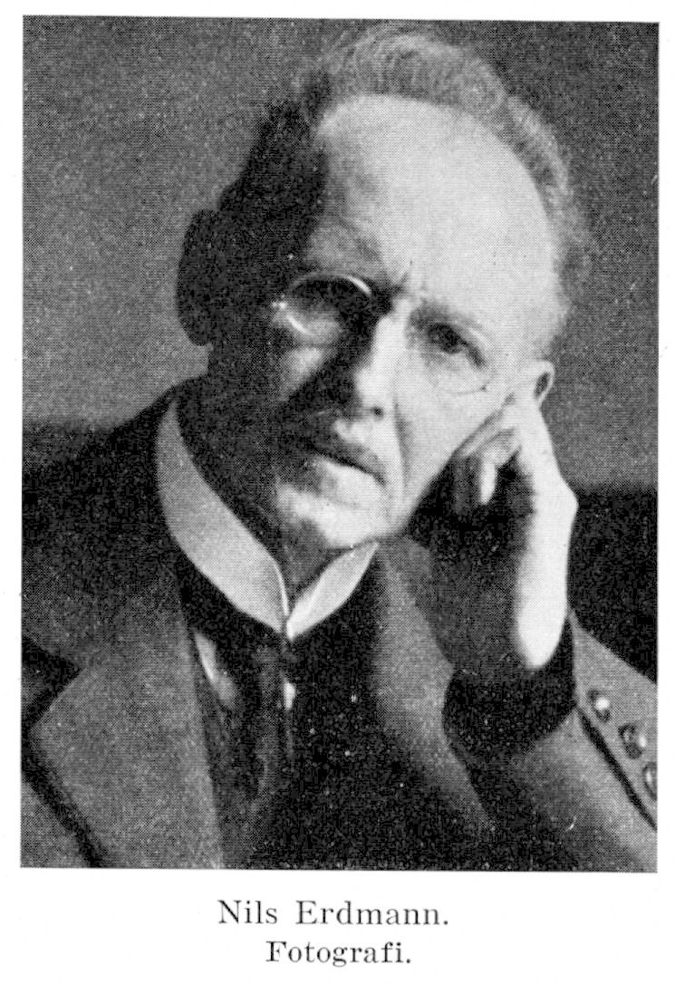 4. Nils-Axel Fredrik Erdmann, f. 23 sept. 1860 i Åker, Söd[1], d. 3 maj 1948 i Stockholm (Engelbr.). Föräldrar: godsägaren Otto Fredrik Erdmann och Mimmi Elvira Johanna Gysler. Student vid Uppsala univ. 19 sept. 1878; e. o. tjänsteman i Riksgäldskontoret 16 jan. 1879; kammarskrivare där febr. 1884 och revisor okt. 1894—1 april 1915; kanslist i k. direktionen över Handelsflottans pensionsanstalt maj 1883 samt kamrer och sekreterare där 1895— 30 juni 1939; litterär medarbetare i Nya Dagligt Allehanda 1892— 1938; chef för litterära avdelningen där 1908—20; v. ordf. i Bellmans-sällskapet 1919—46; skattmästare och v. ordf. i Sveriges författareförening (flera år till 1917). Skriftställare. RNO 1928.