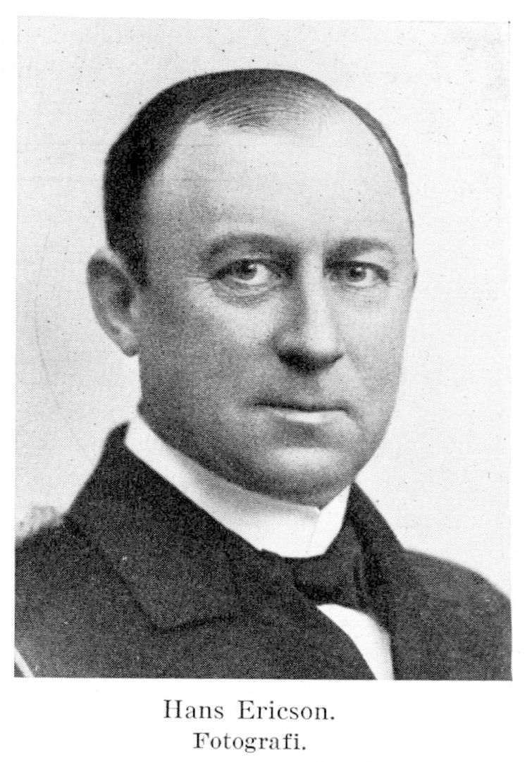 2. Håkan Hans Kristian Ericson, f. 16 febr. 1868 i Stockholm (Jak.), d. 12 okt. 1945 där (Skeppsh.). Föräldrar: grosshandlaren Edward Wilhelm Ericson och Augusta Sofia Christina Lundeberg. Elev i G. A. Lings och A. M. Myrbergs förberedande elementarskola i Stockholm 1877–78, i Klara elementarskola 1878–80, i Norra latinläroverket 1880–82 samt i Realläroverket 1882–83; kadett vid Sjökrigsskolan 1 okt. 1883; utexaminerad och underlöjtnant vid flottan 21 okt. 1889; löjtnant där 1 maj 1891; instruktionsofficer vid exercisskolan på Kungsholmens fästning 1892–93; genomgick infanteriskjutskolan å Rosersberg 1893 samt artilleri- och ingenjörshögskolan 1894–98, avgångsex. från allmänna kursen där 31 mars 1896, från högre kursen 1898; kommenderad i Marinförvaltningen 1898–1904 och 1909–14; kapten i flottan 31 okt. 1900; tf. lärare i artilleri med ritning vid Sjökrigshögskolan 27 febr. 1902, ordinarie 3 juni s. å.; tjänstgjorde vid Kustartilleriets skjutskola 1903; förste flaggadjutant 27 okt. 1904–1907; sekreterare för sjöförsvaret i försvarskommittén 1907–10; kommendörkapten av 2. gr. 17 febr. 1911; led. av riksdagens första kammare 1912–19 (statsutskottet 1914 A–1917); chef för Marinförvaltningens artilleriavdelning 1914; adjutant hos Konungen 10 dec. 1915; kommendörkapten av 1. gr. 31 dec. s. å.; statsråd och chef för Sjöförsvarsdepartementet 30 mars–19 okt. 1917; kommendör vid flottan samt överadjutant hos Konungen 4 aug. s. å. (med beräknad tjänsteställning från 31 juli); verkställande direktör för Stockholms rederi a.-b. Svea 16 febr. 1918–1 okt. 1934, ordf. i dess styrelse 1935–44; konteramiral i flottans reserv 22 juni 1928; led. av Järnvägsrådet 1929; led. av sjökrigsmaterielkommittén 1907–09, av flottstationskommittén 1908, av kommittén angående sjömanskårens organisation 1908, led. av kustförsvarskommittén 1914, av lotsverkets löneregleringskommitté 1913–15; ordf. i styrelsen för a.-b. Finnboda varv 1921–44, för ångfartygs a.-b. Göta kanal 1925–44, för a.-b. Rederiagenturen 1919–44, vice ordf. i Sveriges allmänna sjöfartsförening 1925, ordf. 1926–44. LÖS 1901; RVO 1904; RSO 1910; RNO 1911; LKrVA 1913; HedLÖS 1917; KSO2kl 1920; KSO1kl 1926; GV:sJmt 1928; KVO1kl 1931; KDDO1gr 1919; KNS:tOO2kl 1912; KFinlVRO1kl 1940; innehade även andra utländska ordnar.
