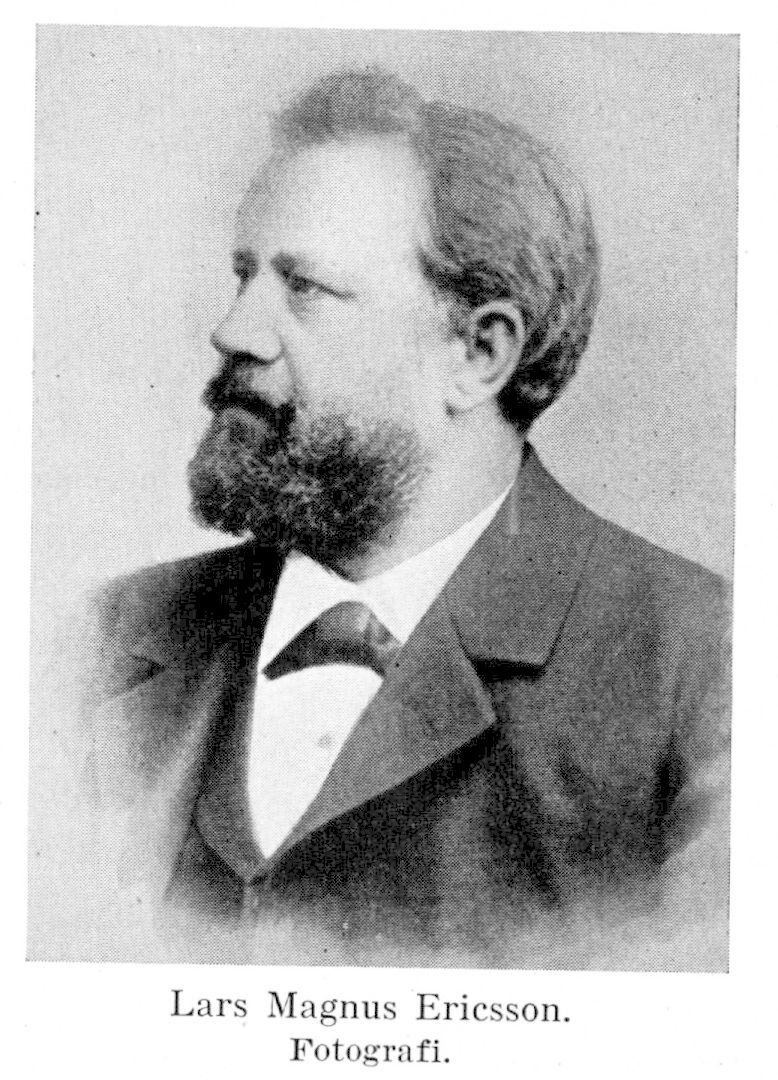 Ericsson, Lars Magnus, f. 5 maj 1846 på Norrtomta gård, Värmskogs sn (Värml.), d. 17 dec. 1926 på Hågelby gård, Botkyrka sn (Sth.). Föräldrar: hemmansägaren Eric Ericsson och Maria Jonsdotter. Arbete i lantbruk; smedslärling och smed vid malmfyndigheter i Egersund, Norge; järnvägsarbetare; smedslärling vid Charlottenbergs bruk, i Arvika och Karlstad; arbetare vid Öller & Co:s telegrafverkstad i Stockholm 1866–72; studieresa med statligt resestipendium till Tyskland och Schweiz 1872–våren 1876; startade egen instrumentmakarverkstad i Stockholm 1 april 1876; tillverkade telefonapparater från 1877 (från 1881 av egen konstruktion); lät uppföra egen fabriksbyggnad vid Tulegatan 5 1884 och stort fabrikskomplex vid Tulegatan 15–19 1896; stiftade a.-b. L. M. Ericsson s. å. (innehade aktiemajoriteten); verkst. direktör 1896–1903; ägare av Ahlby säteri och Hågelby, båda i Botkyrka sn (Sth.). RVO 1889; KVO2kl 1901; KVO1kl 1915.