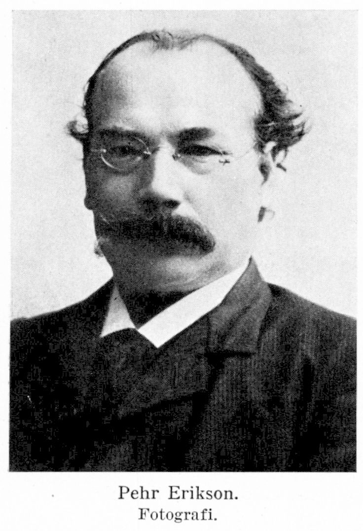Erikson, Pehr, f. 1 okt. 1861 i Heden, Leksands sn (Kopp.), d. 13 febr. 1922 i Stockholm (Bromma). Föräldrar: jordbrukaren och kolaren Back Erik Mattsson och Målar Karin Olsdotter. Skolgång i Leksand; springpojke i Stockholm 1873; typograflärling där 1875 och därefter typograf vid Centraltryckeriet; faktor vid Oskar Eklunds tryckeri 1883–84; typograf och biträdande redaktionsmedlem i Göteborgs Nyheter 1884–86; Göteborgskorrespondent till Nerikes Allehanda 1885–86; delägare i och medredaktör för tidn. Göteborg 1886; redaktör för Folkets Röst, Göteborg, 27 aug. 1887–1889; förtroendeman i Sveriges socialdemokratiska arbetarparti 1889–91; redaktionssekreterare i Social-Demokraten, Stockholm, 1890–1906.