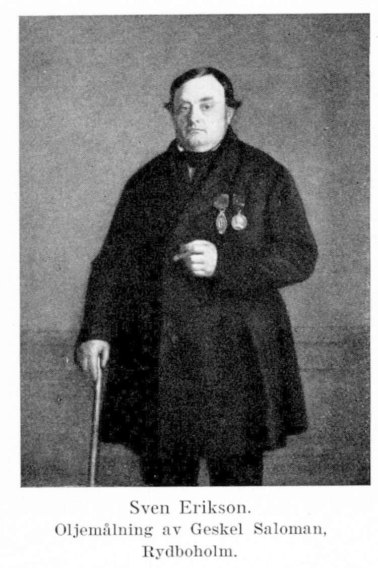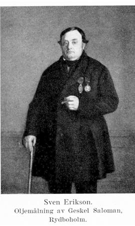 1. Sven Erikson, f. 29 mars 1801 i Stämmemad, Kinna sn (Älvsb.), d. 25 maj 1866 på Rydboholm, Kinnarumma sn (Älvsb.). Föräldrar: hemmansägaren Erik Andersson och Kerstin Andersdotter i Stämmemad. I besittning från 1824 av Kinna Rättargården; hemmansägare i Kinna by samt vävnadsförläggare där från 1825; grundade 1834 tills, med grosshandlare J. Francke i Göteborg och handelsmannen J. C. Bäfverman i Borås Rydboholms Konstväfveribolag (från 1847 Rydboholms Väfverifabrik) i Kinnarumma sn; företog under maj–juni 1844 en resa till Belgien och England; blev 1845 ensam ägare av fabriken; från 1848 led. av styr. för Örebro enskilda banks avdelningskontor i Borås; inköpte 1849 Viskafors bruk jämte underlydande fastigheter; anlade 1852 Svaneholms väveri; flyttade s. å. från Kinna till Rydboholm; tog 1852 initiativet till anläggande av Rydals spinneri i Seglora sn; anlade 1852–53 på Rydboholm ett tryckeri för bomullsvävnader; byggde 1855–56 Viskafors väveri. Erhöll 1834 den större medaljen i guld för medborgerlig förtjänst. RVO 1852.