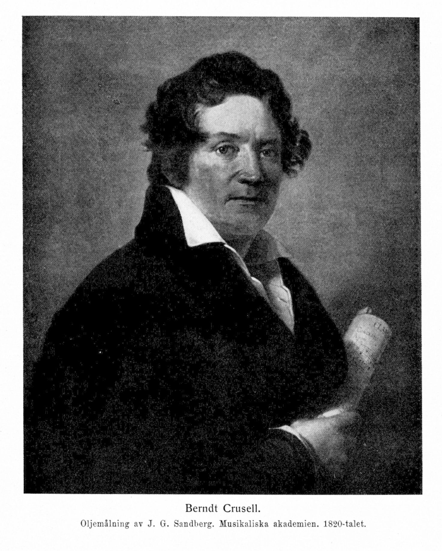 Bernhard (Berndt) Henric Crusell, f. 15 okt. 1775 i Nystad, d. 28 juli 1838 i Stockholm. Föräldrar: bokbindaren Jakob Crusell och Margareta Elisabet Messman. Volontär vid änkedrottningens livregemente till fot 1788; tjänstgjorde på skärgårdsflottan under kriget 1788—90; transporterades till den i Stockholm förlagda bataljonen av regementet 1791; rustmästare med pipares lön 5 juni 1792; åtnjöt samtidigt undervisning av violinisten M. D. Böritz; kammarmusikus och klarinettist vid hovkapellet 1793 (var hautboist och trumpetare 1819; jmfr K. brev 5 maj); företog en resa till Tyskland våren 1798—1799 och studerade där under sju månader för klarinettvirtuosen Fr. Tausch i Berlin; vistades i Paris 1803—04 och utbildade sig där i harmonilära vid konservatoriet samt åtnjöt undervisning av Berton och Gossec; tf. hovkapellmästare 1808—10; musikdirigent vid första infanteribrigadens enskilda musikkår; erhöll av K. M:t direktörs titel 2 juni 1818; förste kammarmusikus; erhöll avsked från befattningen vid hovkapellet 31 dec. 1833 samt pension 22 febr. 1834 (enligt utfästelse av teaterdirektionen 1807, K. brev 30 apr. 1819 och riksens ständers skrivelse 21 apr. 1829). LMA 1801; ledamot av Götiska förbundet 1818; erhöll Svenska akademiens stora guldmedalj 1837.