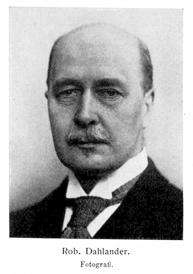 3. Robert Dahlander, son till D. 1, f. 9 juni 1870 i Göteborg. Elev vid Stockholms h. latinläroverk å Norrmalm ht. 1880—vt. 1884, vid h. realläroverket å Södermalm ht. 1884—vt. 1885, vid Hj. Berwalds privatkurs ht. 1885—vt. 1886 och vid tekniska högskolan 14 sept. 1886; avlade avgångsexamen som väg-och vattenbyggnadsingenjör vid sistnämnda läroanstalt 30 apr. 1890. Biträde hos distriktingenjören i västra väg- och vattenbyggnadsdistriktet juli 1890—sept. 1891; reste utrikes 1891; elev, därpå ritare och biträdande ingenjör vid Maschinenfabrik Oerlikon i Schweiz 1892—93; ingenjör vid Allmänna svenska elektriska a.-b. i Västerås juni 1893—dec. 1902 och var där avdelningschef från 1896 samt chef för filialen, den 1898 inköpta mekaniska verkstaden, 1898—1902; erhöll i uppdrag att verkställa utredning om statsbanornas elektrifiering apr. 1902; ledare av elektriska driftförsök och statens järnvägars ombud vid förhandlingar om inköp av vattenfall för statens räkning; sakkunnig beträffande driftens elektrifiering vid statens järnvägar från 15 febr. 1903; förestod elektriska kontoret 1904; ledamot av styrelsen för Nya ackumulator a.-b. Jungner 27 jan. 1906—1909 och av styrelsen för a.-b. Monofon 28 dec. 1906—6 juni 1913; ordförande i Teknologföreningens avdelning för elektroteknik 1907—08, v. ordförande i föreningen 1909, ordförande 1910—11; byrådirektör i järnvägsstyrelsen 31 dec. 1907 —1908 (erhöll avsked 26 juni); direktör för Stockholms stads gas-och elektricitetsverk 2 maj 1908 (tillträdde 1 aug); ledamot av styrelsen för Svenska vattenkraftföreningen från dess stiftande 5 okt. 1909 (v. ordförande från 1921)[1]; ledamot av styrelsen för a.-b. Telotelefon 18 nov. 1909—16 maj 1913; ordförande i Svenska kommunaltekniska föreningen 1912—16 och i Svenska elektricitetsverksföreningen från 1913; ledamot av kommunala omorganisationskommissionen 1914—19; stiftare av Svenska gasverksföreningen 1915 samt dess ordförande 1915—24; ledamot av styrelsen för Dalälvens regleringsförening u. p. a. från 1916; ordförande i Gas- och koksverkens ekonomiska förening u. p. a. från 1918 och Svenska elektricitetsverkens ekonomiska förening u. p. a. från 1919; av styrelsen över Stockholms gas- och elektricitetsverk utsedd till ledamot av styrelsen för Brännkyrka elektriska distributions-a.-b. från 27 juni 1919; ledamot av styrelsen för a.-b. Svarthålsforsen från 14 apr. 1920, av Stockholms stads löneavtalsnämnd från 1923 samt äv styrelserna för Lanforsens kraft-a.-b. från 18 juni 1926 och för Krångede a.-b. från 30 maj 1929. RNO 1911; RNS:tOO 1918; KVO2kl 1919; hedersledamot av Svenska gasverksföreningen 1924.