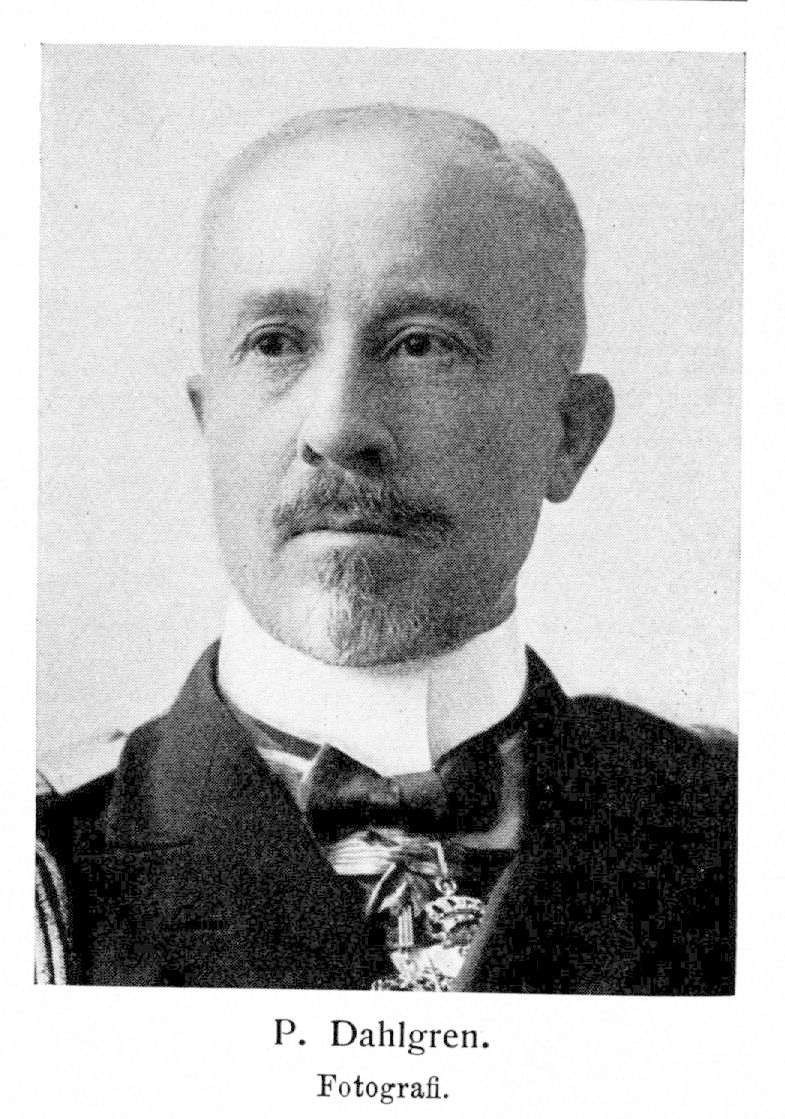 Per Johan Dahlgren, f. 20 febr. 1858 i Stockholm. Föräldrar: hovjägaren Johan Adolf Dahlgren och Klara Agneta Winblad. Extra kadett vid flottan 1870; elev vid sjökrigsskolan 28 sept. 1871; underlöjtnant vid flottan 26 okt. 1877 (med tur från 9 okt.); placerad på Karlskrona station; elev vid gymnastiska centralinstitutet 1 aug. 1881—15 maj 1883; löjtnant i flottan 19 maj 1882; kapten vid flottan 22 mars 1889; placerad å Stockholms station 1 okt. 1893; adjutant i sjöförsvarsdepartementets kommandoexpedition 1 okt. 1893—hösten 1898; attaché vid K. M:ts beskickning i Washington maj—aug. 1898; kommendörkapten av andra graden 7 okt. 1898; chef för marinförvaltningens torpedavdelning 1 apr. 1900—9 nov. 1905 och maj—sept. 1906; kommendörkapten av första graden 30 dec. 1901 (med lön från 10 okt. 1902); kommendör vid flottan 30 sept. 1904; chef för sjökrigshögskolan 9 nov. 1.905 och för sjökarteverket 11 juni 1909; erhöll avsked med pension från och med 21 febr. 1921; upphörde att vara tjänstskyldig 20 febr. 1928. — Har tjänstgjort ombord flertalet år 1870—1911; instruktionsofficer i exercisskolan 1880—81; genomgick speciell minkurs 1885—86; tjänstgjorde ånyo å exercisskolan 1886—87; informationsofficer i underbefälsskolans styrmansklass 1887—90; flaggadjutant vid kusteskadrarna 1888, 1889 och 1897; redaktör för Tidskrift i sjöväsendet 1889—93; äldste officer vid sjöinstrument-och sjökarteförrådet i Karlskrona 1890—93; mätningsförrättare vid militärledsarhetena 1890 och ledare av desamma 1891—94; revisor i flottans pensionskassa 1892—1903 samt fullmäktig därstädes 1894, 1899, 1904 och 1909; tjänstgjorde i flottans stab för särskilt uppdrag 1898—99 samt därstädes och i marinförvaltningen 1899—1900; chef å Drott 1899; avdelningschef för torpedskoleavdelningen 1900, 1901 och 1902; chef å pansarbåten Vasa 1903 och 1904; divisionschef för andra pansarbåtsdivisionen 1905; eskaderchef för kusteskadern 1908 och mottog i denna egenskap å svenska flottans vägnar presidenten Fallières och kejsar Vilhelm II; chef för skjutskoleeskadern 1911; förste kommissarie vid sjögränsutmärkning mot Norge sommaren 1911; deltog i underhandlingar i Köpenhamn angående sjömätning i Öresund 6—8 juli 1911; delegerad vid internationella sjöfartskonferensen i S:t Petersburg våren 1912 och vid internationella hydrografiska konferensen i London 1919; kommissarie vid utmärkande av sjögränsen mot Norge 26 juni—9 juli 1912; biträdde tredje försvarsberedningen enligt generalorder 11 febr. 1913; stationsbefälhavare i Stockholm inemot sex månader vid flottans mobilisering 1914. — Ledamot av reglementskommissionen 30 jan. 1894, kommittén angående försök med avståndssignaleringsmateriel 19 mars—11 maj 1898, sjökrigsmaterielkommissionen 14 juni— 9 nov. 1901, kommittén angående reglemente för flottans pensionskassa 3 nov. 1905—2 maj 1907 (ordförande) och kommittén angående förtidspensionering och reservstaten vid armén och marinen 20 nov. 1908—3 mars 1909 (ordförande från 21 febr. 1909) samt av 1902 års löneregleringskommitté från 19 maj 1911 för löneregleringen för den civila personalen vid sjökarteverket (bet. avgivet 14 dec. 1911). — LÖS 1887; RSO 1897; RDDO 1897; LKrVA 1899; KSO2kl 1906; KSO1kl 1912; KDDO1gr 1913; KNS:tOO1kl 1914; innehar dessutom utländska ordnar och är ledamot av utländskt sällskap.