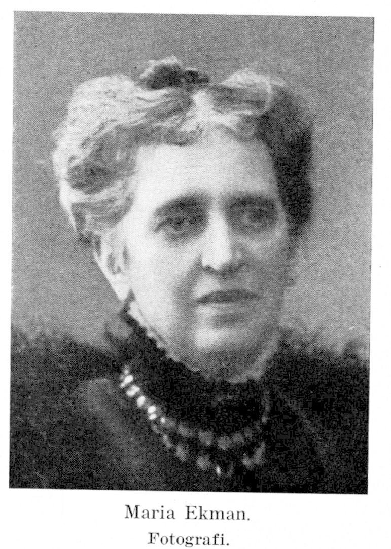 Källor: Engelbrekts förs:s i Stockholm dödbok 1915. – Handlingar rörande donationer i Göteborg, 5–6 (1916–23). – M. Björkquist, Maria Ekman (i H. Rosman, Bjärka-Säby och dess ägare, 3, 1927) ; F. von Dardel, Minnen, 4 (1913); Alma Hedin, Maria Ekman (1925); se i övrigt litt. under E. 6.
