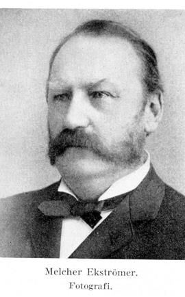 2. Johan Melchior (Melcher) Ekströmer, den föregåendes son, f. 26 sept. 1835 i Stockholm (Maria), d. 20 april 1923 på Fogelfors bruk, Fågelfors sn (Kalm.). Elev vid Teknologiska institutet 1852, utex. från dess fackskola för maskinbyggnadskonst och mekanisk teknologi 1855; elev vid Strömsholms kanalbyggnad sommaren 1854; nivellör vid statens järnvägsbyggnader 1855; genomgick Högre artilleriläroverket å Marieberg 1856–59; avlade examen för inträde vid flottans mekaniska kår 1857; löjtnant vid Väg- och vattenbyggnadskåren 16 dec. 1859; stationsingenjör vid statens järnvägsbyggnader 1860–64; arbetschef vid Landskrona–Eslövs järnväg 1864–65; undersökte norra stambanan alternativet Uppsala–Storvik 1866; extra adjutant i Väg- och vattenbyggnadsstyr. s. å.; lärare i praktisk geometri vid Teknologiska institutet 1867; extra adjutant i norra väg- och vattenbyggnadsdistriktet 1868–70; kapten i kåren 14 dec. 1869; arbetschef vid Skebo järnväg 1871; rådgivande ingenjör vid Kristianstad–Sölvesborgs järnväg 1872; byggde på entreprenad Karlskrona–Växjö järnväg 1871–75, Kalmar–Emmaboda järnväg 1872–75, Nybro–Sävsjöströms järnväg 1874–76 och Växjö–Klavreströms järnväg 1894–95; avsked från Väg- och vattenbyggnadskåren 25 jan. 1889; bruksägare; suppl. i Kalmar läns s. landsting 1886 och 1896–99, led. 1887–95, 1900–01 och 1904–09; led. av riksdagens andra kammare 1891–95, av första kammaren 1896—1911 (led. i tillfälligt utskott 1895, i särskilt utskott 1898, i bankoutskottet 1900–07). RVO 1865; RNO 1874; KVO2kl 1891; KVO1kl 1906.