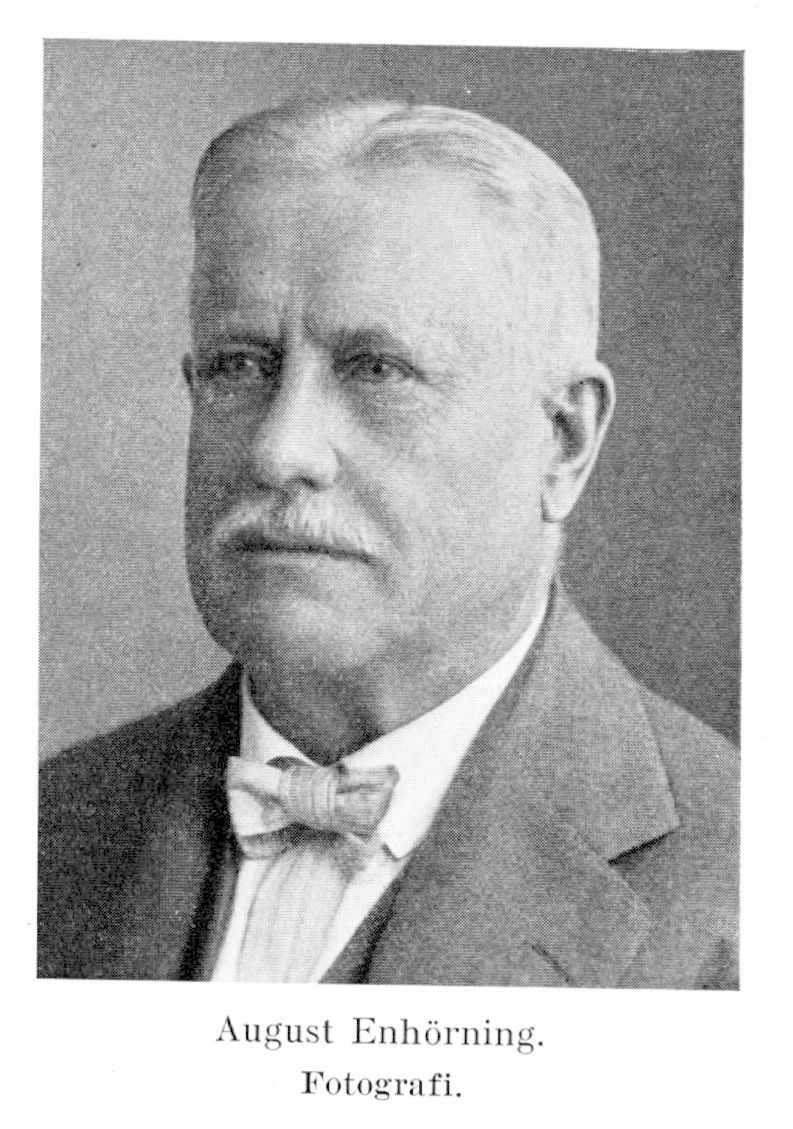 3. Erik August Enhörning, brorson till E. 2, f. 18 maj 1860 i Luleå, d. 18 juli 1944 i Stockholm (Hedv. El.). Föräldrar: inspektoren Eric Adolph Enhörning och Maria Catharina Gowenius. Elev vid Piteå lägre elementarläroverk; tjänsteman i J. A. Enhörnings trävarufirma i Kubikenborg 1877–85; chef för detta företag 1885–1926 (från 1891 a.-b.); verkställande direktör i Lars Lithanders trävara a.-b. och i flera rederi a.-b., bl. a. Orlando och Höfding; led. av styrelsen för Sågverksförbundet 1907–25 (vice ordf. 1912–20, ordf. 1921–25), för Sv. arbetsgivareföreningen 1912–26; vice ordf i Sv. trävaruexportföreningen 1917–27; led. av styrelsen för Sveriges allm. exportförening 1921–31; ordf. i styrelsen för Sundsvalls trävaruexportförening; vice ordf. i Försäkrings a.-b. Svenska Lloyd och a.-b. Globus; led. av styrelsen för Gimåns, Indals och Ljunga älvs flottningsorganisationer, för Sveriges redareförening, för Norrlands ångfartygs assuransförening och Ostkustbanans a.-b. Kommunalt verksam; led. av Västernorrlands läns landsting 1899–1918 (vice ordf. 1918); led. av riksdagens första kammare 1904–09 och 1919–32 (led. i bankoutskottet 1923–28); led. av styrelsen för Västernorrlands moderata förbund 1912–26; lekmannaombud vid kyrkomötet 1918; inspektor vid Sundsvalls högre allm. läroverk 1918–27; grekisk konsul i Sundsvall 1918–30; ordf. i Västernorrlands och Jämtlands läns handelskammare 1921–30 (hedersordf. från 1930); ordf. i styrelserna för Västernorrlands läns sinnesslöanstalt och skyddshem i Boda; ordf. i Sundsvalls med omnejd försvar åt sjösidan och i Sundsvalls landstormsförening. RVO 1901; RNO 1917; KVO2kl 1921.