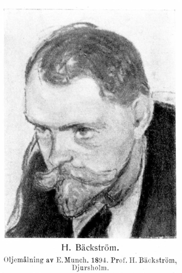 Helge Mattias Bäckström, f. 6 okt. 1865 i Örebro. Föräldrar: auditören vid livregementets husarer Matts Evald Bäckström och Mina Zander. Elev vid Karolinska h. elementarläroverket i Örebro vt. 1876–vt. 1880 och vid Örebro tekniska elementarskola ht. 1880–vt. 1883; avlade mogenhetsexamen som privatist vid Karolinska läroverket 30 maj 1884; student vid Stockholms högskola ht. 1884, vid Uppsala universitet ht. 1888–vt. 1889 och ånyo vid Stockholms högskola ht. 1889–ht. 1890; studerade hos professor Rosenbusch i Heidelberg somrarna 1891 och 1892; fil. doktor i Heidelberg aug. 1891; studerade i Paris dels vid College de France, hos professor F. Fouqué, dels hos gruvingenjören vid geologiska kartverket Auguste Michel Lévy ht. 1892–31 jan. 1893 och utförde en kristallofysisk undersökning vid Bureau inter-national des poids et mesures i Breteuil; har företagit upprepade studieresor. Docent och tf. laborator (från 1 jan. 1898 tf. lärare) i mineralogi och petrografi vid Stockholms högskola 4 sept. 1891 samt professor i mineralogi och petrografi därstädes 21 febr. 1908–1 juli 1914 (kvarstår därefter som lärare över stat); ledamot av Djursholms skolråd 19 jan. 1902–1919 och av styrelsen för Djursholms folkskola från 1920; ordförande i Geologiska föreningen 1903 och 1922; ledamot av Djursholms kommunalnämnd och Djursholms kommunalfullmäktige 12 jan. 1903–1913 samt av stadsfullmäktige i Djursholm från 1914 och har därunder bl. a. varit kommunalvald ledamot av styrelsen för Djursholms a. b. från 27 apr. 1910, ledamot av kyrkogårdsstyrelsen från 31 mars 1913, av drätselkammaren från 1914 (v. ordförande 1914–17, ordförande från jan. 1918), av arbetslöshets- och hjälpkommittén 1914 och av järnvägskommittén från 1917; ordförande i styrelsen för Djursholms konsumtionsförening från 1905; ledamot av styrelsen för Djursholms konsumtionsförenings fastighets-a.-b. 10 okt. 1905–11 mars 1912 och från 28 febr. 1916 (ordförande från 1916), av styrelsen för a.-b. Djursholms idrottspark 1905–10 maj 1906, av styrelsen för Djursholms samskola från 25 jan. 1909, av styrelsen för a.-b. Djursholms arbetarebostäder från 28 mars 1917 och av styrelsen för a.-b. Djursholms lärarebostäder från 12 nov. 1923; en av stiftarna av Tidnings-a.-b. Svenska folket och ordförande i dess styrelse 8 okt. 1906–6 maj 1909; skattmästare i exekutivkommittén för elfte internationella geologkongressen i Stockholm 1910 och ledamot av samma kommittés arbetsutskott; ledamot av riksdagens första kammare för Malmöhus län 1912–19 lagt. och för Stockholms län 1919 urt.–1921 och var därunder bl. a. valman vid fullmäktigevalen 1912–13, 1914 B–1919 lagt. och 1920, ledamot av bevillningsutskottet 1912–1919 lagt., av första särskilda utskottet (ang. spannmålspolitiken) 1919 urt. och av statsutskottet 1920–21; en av stiftarna av Bokförlags-a.-b. Tiden och ordförande i dess styrelse från 7 okt. 1912; svensk representant vid tolfte internationella geologkongressen i Toronto 1913; ordförande i styrelsen för Sveriges praktiska försäkringsanstalt Folket 1914–4 dec. 1924 och ledamot av styrelsen för Försäkringsanstalten Folkets förlags-a.-b. 26 okt. 1914–28 nov. 1924; ledamot av 1917 års bankkommitté 22 sept. 1917–31 dec. 1919; ledamot av styrelsen för a.-b. Vin-och spritcentralen från 17 okt. 1917; ledamot av styrelsen för a.-b. Astra, apotekarnas kemiska fabriker 23 okt. 1920–2 jan. 1924; ordförande i styrelsen för Jakobsbergs folkhögskola från 11 juni 1919; fullmäktig i riksbanken 10 maj 1920–7 juni 1921; riksgäldsfullmäktig 30 okt. 1924; överrevisor i vattenfallsstyrelsen 16 okt. 1925. Jur. hedersdoktor vid MacGill university i Montreal 2 aug. 1913.
