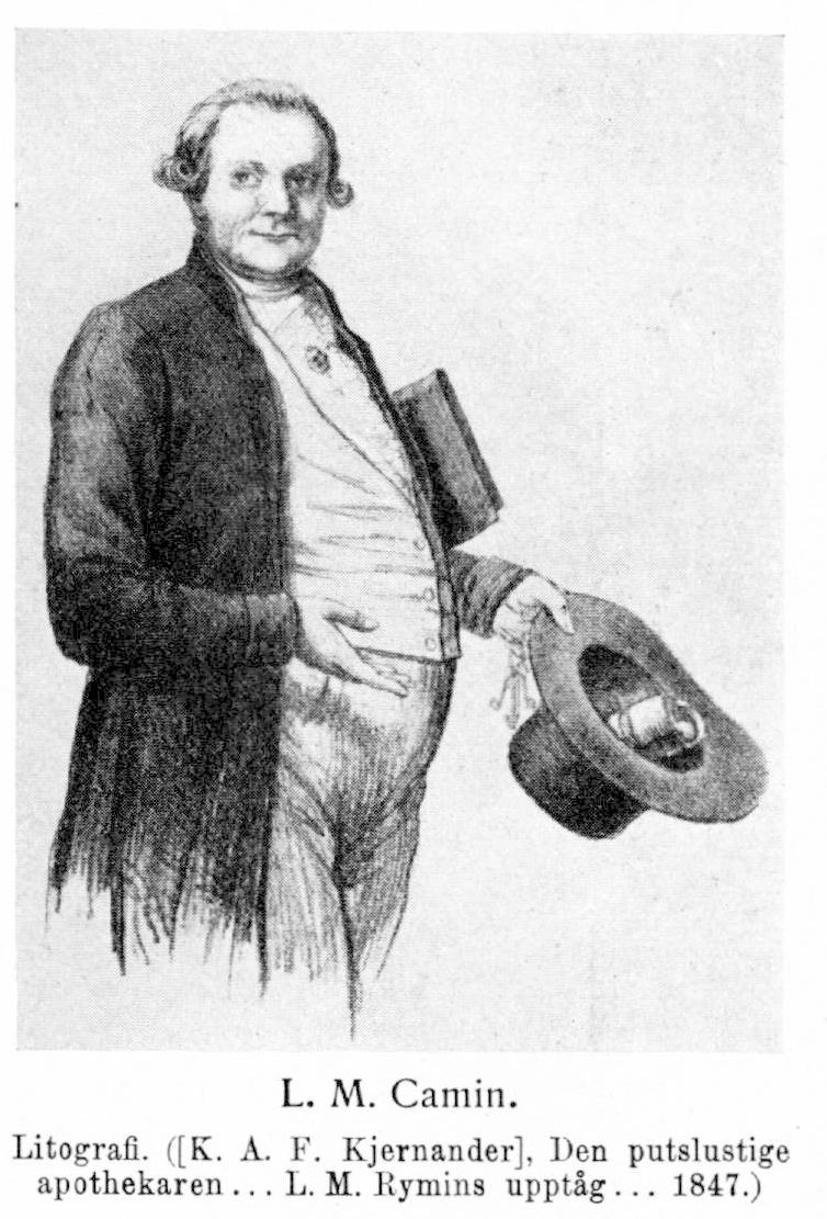 Det ovan sagda vittnar om C: s medborgerliga och filantropiska sinnelag. Bilden kan emellertid kompletteras med mera robusta drag, lånade från det egendomliga kvasibiografiska aktstycke, som apotekaren K. A. F. Kjernander år 1847 anonymt utgav under den lätt genomskinliga titeln »Den putslustige apothekaren assessor L. M. Rymins upptåg samt lefnad och lefnadsvanor». Författaren till detta skäligen plumpa och som litterär produkt enkla alster, vilket närmast har karaktären av smädeskrift, hade varit anställd hos C. på Morianen. Kjernander erkänner, att Morianen under C:s ledning var känt för de »bästa och ädlaste droguer», något som även intygas i andra källor, och själv skildras den originelle C. som en grandios och myndig storborgare, då han om morgonen inträder i apoteket, »hållande under vänstra armen den bok, varuti han själv införde dagens konto, och i handen sin hatt, med kullen vänd inåt kroppen, måhända av orsak, att den voluminösa penningbunt, han däruti förvarade, skulle bemärkas. Hatten hade ännu icke fått vidröra hans av den skicklige friseringskonstnären Risberg elegant ordnade, belockade och pudrade huvud. Med högburen panna och avmätta steg trädde han inom skranket av det gebit, där hans minsta vink fordrade ögonblicklig åtlydnad. Vikande åt vänster, fram till fönstret, som vette åt Drottninggatan, med glättig min och vänliga böjningar på huvudet samt artiga åtbörder med den lediga handen hälsade han sina provisorer med en ljuv: 'God morgon, mina herrar!'.» Men allt efter som dagen framskrider, avslöjar sig C. i Kjernanders pamflett som en suput och grälmakare, vilken städse överförfriskar sig och därunder hemfaller till ständiga, med ett ideligt »hva» interfolierade lynnesutbrott. Hur mycket av det personligt nedsättande i detta porträtt bör skrivas på förtalets och smädelsens konto, undandrager sig vår prövning, men obestridligt är skildringens värde som tidsbild, då den tecknar dryckesvanorna inom vissa bättre lottade kretsar under början av Karl Johanstiden.