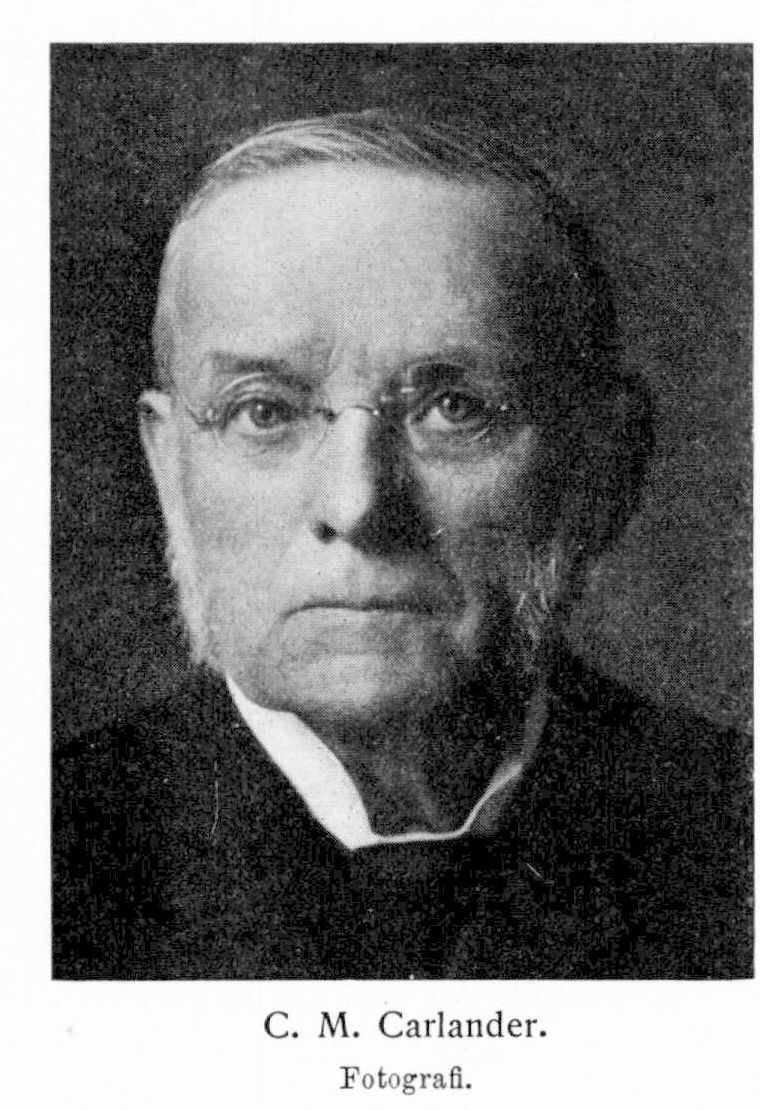 2. Carl Magnus Carlander, den föregåendes sysslings son, f.24 sept. 1837 i Göteborg, d. 27 juni 1911 i Stockholm. Föräldrar: kammarskrivaren, sedermera godsägaren Lars Magnus Carlander och Karolina Lithner.[1] Elev i Skara läroverk 1848–51. Anställd hos sidenfabrikör E. Liné i Stockholm 1851–55; bokhållare vid Locknö sågverk i Västernorrlands län 1855–56; baptistpredikant dels i Norrköping, dels på resor 1856–60; sekreterare vid baptistsamfundets första konferens i Stockholm 13–16 juni 1857; efter utträde ur baptistsamfundet kolportör för den sjödinska syndfrihetsläran 1860; bokhållare hos körsnären David Forssell i Stockholm 1863–71; idkade grosshandel i filthatt- och körsnärsbranschen under firma Johansson & Carlander, senare Carlander & c: o 1871–92; ånyo anställd hos körsnären D. Forssell 1892–1908.