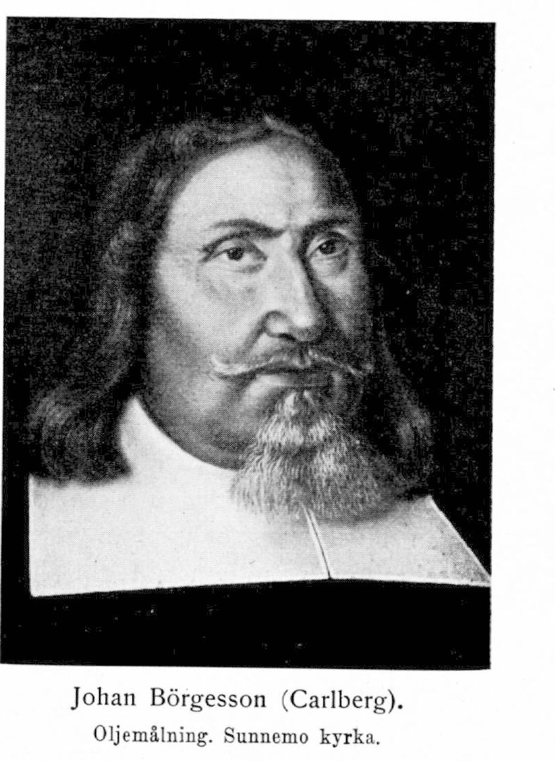 1. Johan Börgesson, senare stundom även Carlberg, f. 24 juni 1606, d. 9 mars 1676 på Sunnemo bruk i Värmland. Föräldrar: råd- och handelsmannen i Brätte Börge Olofsson och Anna Pedersdotter. Kom i tjänst i Karlstad hos borgaren Anders Hansson samt sedermera, omkr. 1621, i Filipstad hos borgaren Segol Eriksson; började driva handel på egen hand 1624; borgare i Karlstad 15 maj 1629; ägnade sig tillika åt bruksrörelsen och blev med tiden ägare till ett flertal bruk; rådman i Karlstad 2 maj 1636 samt borgmästare därstädes 1638–56 och ånyo 6 maj 1661–10 juli 1665; avböjde val till riksdagsman 1652 och 1664.
