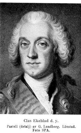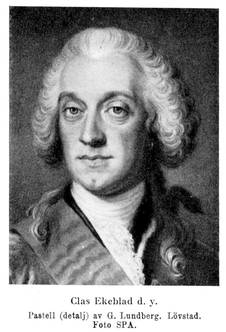 4. Clas Ekeblad, den föregåendes son, f. 30 mars 1708 i Elbing, d. 26 okt. 1771 i Stockholm. Student vid Uppsala univ. 26 okt. 1719; rector illustris vid Åbo akademi 17 juli 1725; e. o. kanslist i Riksarkivet 1726, i Kanslikollegium 1727; förste kanslist hos de svenska ombuden vid kongressen i Soissons 1728; kanslijunkare 20 maj 1729; kammarherre 15 okt. 1731; utnämnd minister i Madrid 25 aug. 1740 men tillträdde ej; kansliråd 23 juli 1741; envoyé i Paris 13 febr. 1742; rappellerad 11 jan. 1744; riksråd 22 dec. 1746; rikskansliråd 19 dec. 1747; överstemarskalk 28 febr. 1751; led. av Stockholms stads brand- och försäkringscontoirs överstyrelse s. å.; kanslipresident 10 april 1761; kansler vid KMO 23 nov. s.å.; Åbo akademis kansler 11 maj 1762; avsked från samtliga ämbeten 12 aug. 1765; återkallad i rådet och ånyo kanslipresident 27 maj 1769; ånyo Åbo akademis kansler 5 juli s. å. LVA 1740 (preses fjärde kvartalet 1744); KNO 1748; RoKavKMO s. å.; LVittA 1753.