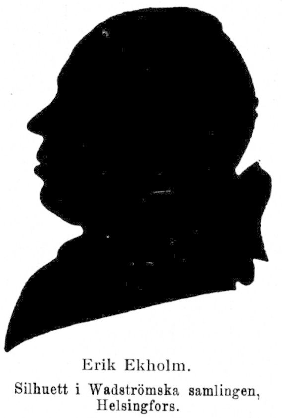 1. Erik Ekholm, f. 24 dec. 1716 i Sala, d. 18 sept. 1784 i Stockholm (Nik.). Föräldrar: strumpvävaren och rådmannen Anders Ekholm och Anna Kilander. Student vid Uppsala univ. 9 febr. 1736, avgick dec. 1748; ämnessven i Vetenskapsakademien 1748; e. o. kanslist i Antikvitetsarkivet 26 febr. 1751; tf. notarie vid Bokauktionskammaren i Stockholm 6 aug. 1753; ordinarie 1758–84. Publicist och samlare.