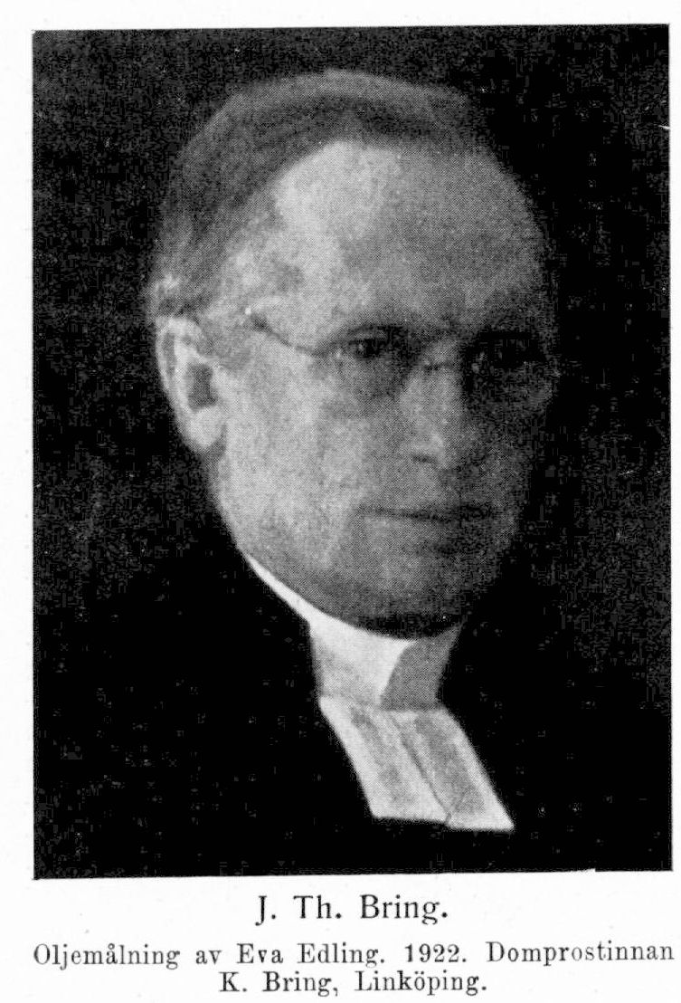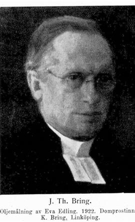 6. Johan Magnus Fredrik Theophil Bring, den föregåendes son, f. 1 jan. 1863 i Stockholm, d. 13 nov. 1925 i Linköping. Elev vid Katarina läroverk vt. 1873 och vid Stockholms gymnasium ht. 1876; avlade mogenhetsexamen vid h. allmänna läroverket å Södermalm 18 maj 1880; student i Uppsala 1 febr. 1881; fil. kand. 27 maj 1884; avlade dimmissionsexamen 15 dec. 1886, praktisk teol. examen 28 maj 1887 och prästexamen 18 juni s. å.; prästvigd 19 juni s. å.; företog med statsunderstöd en studieresa till tyska universitet sommaren 1902. E. o. amanuens vid Uppsala universitetsbibliotek 16 maj 1885–14 sept. 1887; pastorsadjunkt i Katarina församling 19–26 juni 1887; v. komminister i Klara församling 27 juni–14 aug. s. å.; ånyo pastorsadjunkt i Katarina församling 15 aug. s. å.–11 jan. 1889; v. komminister i Norberg 12 jan.–30 apr. 1889; v. pastor i Lundby 1 maj s. å.–30 apr. 1893; tillika v. pastor i Västerås Barkarö 7 juli–31 aug. 1890; komminister i Sala stad 1 maj 1893–30 apr. 1902; tf. regementspastor vid Västmanlands regemente 6 maj 1898; regementspastor därstädes 27 maj s. å.; ledamot av Sala stadsfullmäktige och av dess kyrko- och skolråd 1899–30 apr. 1902; ledamot av Sala fattigvårdsstyrelse 1900–30 apr. 1902; tf. teol. assistent vid Uppsala universitet 4 mars–31 aug. 1901; teol. assistent därstädes från 1 jan. 1902 (förordnande av 25 jan. s. å.) och tillika domkyrkoadjunkt i Uppsala från 15 jan. 1907; ledamot av Allmänna svenska prestföreningens centralstyrelse 1903; redaktör för Svensk kyrkotidning 1905–10; erhöll avsked från regementspastorsbefattningen med tillstånd att kvarstå i regementets reserv 24 juli 1905; förordnad att under ht. 1909 leda de kyrkorättsliga övningarna vid universitetet 16 juli s. å. samt att t. v. jämte de kateketiska jämväl leda de homiletiska övningarna 10 okt. 1910; domprost i Linköping 31 mars 1911 (tillträdde 1 maj s. å.); ledamot och v. ordförande i Linköpings stads folkskolestyrelse 1911–16, dess ordförande från 1916; inspektor för folkskoleseminariet i Linköping 2 aug. 1911–1925; ordförande i styrelsen för Linköpings stifts ungdomsförbund 1911–25 och i styrelsen för Linköpings stifts teol. sällskap 1911–25; av K. M:t efter biskop H. Totties död förordnad att fullfölja det av denne påbegynta arbetet med revision av svenska kyrkans evangeliebok 28 juni 1913 (bet. 21 apr. och 10 juni 1915); ordförande i styrelsen för Vadstena folkhögskoleförening 1916–25; ledamot av Linköpings stadsfullmäktige 1 jan. 1917–26 maj 1925; ledamot av kommittén för revision av svenska kyrkans evangeliebok 31 jan. 1919–20 okt. 1920; preses vid Linköpings stifts prästmöte 1920; prästerligt ombud för Linköpings stift vid kyrkomötet s. å.; ledamot av evangelieboksnämnden 31 dec. s. å. Ledamot av Samfundet pro fide et ¦christianismo; LNO 1912; av K. M: t utnämnd till teol. doktor i Uppsala 31 okt. 1917.