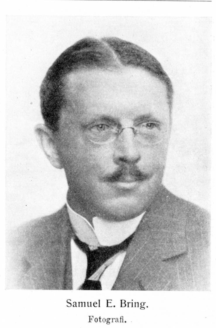 7. Samuel Ebbe Bring, f. 25 sept. 1879 i Vinslöv. Föräldrar: kronolänsmannen Ebbe Lars Bring och Klara Dorotea Bergman. Elev vid Kristianstads h. allmänna läroverk ht. 1891; avlade mogenhetsexamen därstädes 23 maj 1898; student vid Lunds universitet 14 sept. s. å; fil. kand. 31 jan. 1901; fil. lic. 14 sept. 1908; disp. 20 maj 1911; fil. doktor 31 maj 1912; har företagit studieresor till Schwerin sommaren 1904, till Köpenhamn, Haag och Berlin sommaren 1908, till Köpenhamn och Aarhus sommaren 1919 samt till Tyskland, Österrike och Italien sommaren 1924. E. o. amanuens vid Lunds universitetsbibliotek 21 mars 1902–25 aug. 1908; e. o. amanuens vid Lunds universitets konstmuseum 6 febr. 1903; amanuens därstädes 1 jan. 1906–31 dec. 1907; e. lärare vid Lunds h. allmänna läroverk 20 sept. 1906–vt. 1907; ordnade godsägaren F. V. Vult von Steijerns bibliotek sommaren 1907; e. o. amanuens vid K. biblioteket 29 apr. 1908; e. lärare vid Palmgrenska samskolan i Stockholm läsåret 1908—09 samt ht. 1909; andre bibliotekarie vid K. biblioteket 31 dec. 1909; förste bibliotekarie vid Uppsala universitetsbibliotek 28 mars 1914. LSkS 1914; RVO 1915; RNO 1925.