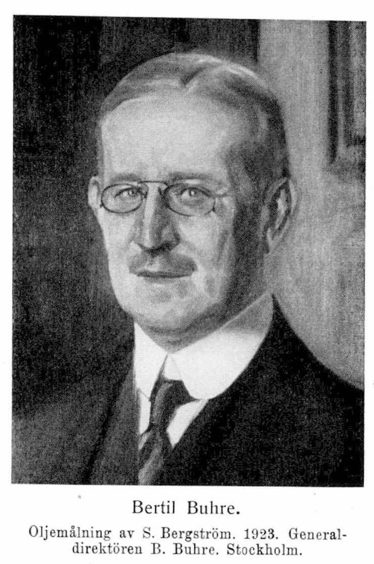 Buhre, Karl Bertil, f. 4 mars 1863 i Stockholm. Föräldrar: fabrikören Johan Gustav Buhre och Augusta Meurling. Elev vid Beskowska skolan ht. 1869; avlade mogenhetsexamen därstädes 20 maj 1881; student vid Uppsala universitet ht. s. å.; med. fil. kand. därstädes 30 jan. 1883; inskriven vid Karolinska institutet 19 febr. 1883; med. kand. 27 nov. 1886; genomgick en bakteriologisk kurs i Köpenhamn hösten 1888; med lic. 30 maj 1891; disp. 6 febr. 1897; med. doktor vid Uppsala universitet 31 maj s. å.; har företagit studieresor i Europa och till Nordamerikas förenta stater. Amanuens vid patologiskt-anatomiska institutionen vid Karolinska institutet 1 dec. 1888–31 aug. 1889, vid medicinska polikliniken å Serafimerlasarettet 1 dec. 1890–4 aug. 1891 och vid medicinska kliniken därstädes 5 aug. 1891–31 juli 1892; tf. karantänsläkare vid Fejan 25 juli 1892–8 jan. 1893 och 7–17 juli 1894; ledamot av medicinalstyrelsens särskilda avdelning för koleraärenden 9 juni 1893; underläkare vid Sabbatsbergs sjukhus medicinska avdelning 1 okt. 1893–31 juli 1894; praktiserande läkare i Stockholm 1894–1913; tillika amanuens i medicinalstyrelsen 29 juni 1894–15 juli 1901; föreståndare för fjärde vaccindepån i Stockholm 5 dec. 1894–30 juni 1901; ledamot av Jakobs och Johannes församlingars fattigvårdsstyrelse 1898–1907; postläkare å Norrmalm 21 jan. 1903–13; Sveriges ombud vid internationella kongressen i Paris angående medicinska yrkesfrågor och läkares skyldigheter 30 apr. 1900; ledamot av Jakobs och Johannes församlingars skolråd 1901–12; sekreterare i Allmänna svenska läkarföreningen (från 1920 Sveriges läkarförbund) 1902–13; ledamot av Stockholms stadsfullmäktige 1903–11 och var därunder bl. a. revisor för Stiftelsen Wilhelm Gowenii minne för åren 1906–11 och revisor för poliskammaren för åren 1908–11; ledamot av kommittén rörande smittsamma könssjukdomar 11 mars 1904 men entledigades på egen begäran 29 apr. s. å.; sekreterare i Svenska nationalföreningen mot tuberkulos 1904–13; ordförande i styrelsen för Söderby sjukhus 9 dec. 1910–1913; generaldirektör och chef i medicinalstyrelsen 30 juni 1913; ordförande bland sakkunnige rörande omorganisation av medicinalstyrelsen m. m. 1913 (enl. K. bemyndigande 12 sept.)–28 okt. 1914; ordförande i kommittén för utredning angående statens bakteriologiska laboratoriums organisation och utveckling m. m. 25 sept. 1917–15 apr. 1920; svenskt ombud vid hygieniskt möte av Selskabet for sundhetspleje i Danmark 15 aug. 1919; ledamot av kommittén för handhavande av den svenska hjälpverksamheten i Ryssland 9 aug. 1921–nov. 1923; delegerad för Sverige i Comité permanent de l'office international d'hygiène publique 4 apr. 1924; ledamot i styrelsen för apotekarkårens livränte- och pensionskassa 1 jan. 1925. RNO 1910; KNO2kl 1914; KNO1kl 1916; KmstkNO 1923; innehar dessutom utländska ordnar. — Ogift.