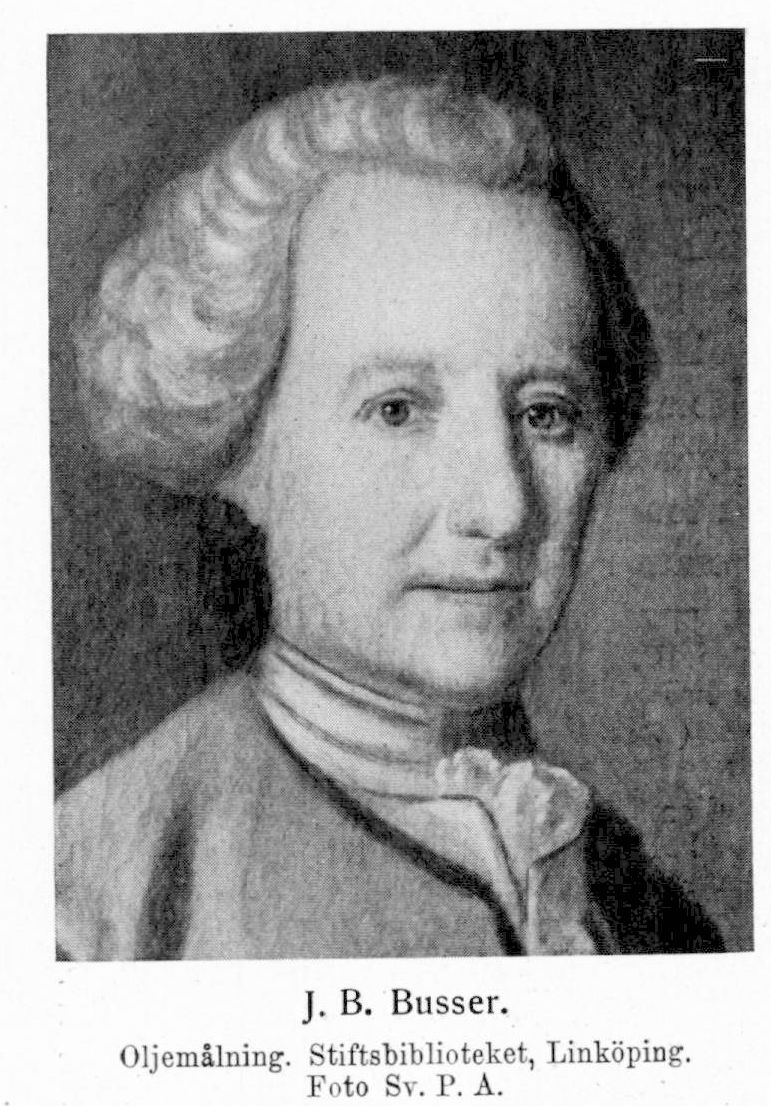 Utgivit: H. J. Woltemat, Anwisning til hela stats-historien. Tilökt och fortsatt af J. B. Busser. Sthm 1770. (4), 202, (2) s. [Ny uppl.] Västerås 1779. 213, (3) s. — H. J. Woltemat, Genwäg til de förnämsta europäiska, asiatiska, afrikanska och americanska staters historia. Ifrån 1750 tilökt och fortsatt af J. B. Busser. Sthm 1771. (8), 666, 156, (4) s.