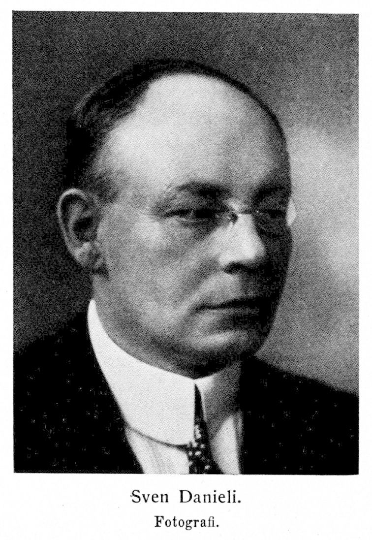Danieli, Sven Dagobert, f. 31 mars 1880 i Hajom. Föräldrar: komministern Magnus Danieli och Edla Gustava Jakobina Åkerlund. Elev vid Varbergs h. allmänna läroverk ht. 1892 och vid Göteborgs h. latinläroverk ht. 1893; avlade mogenhetsexamen vid sistnämnda läroverk 26 maj 1899; elev å apoteket Enhörningen i Göteborg 1 sept. 1899—31 aug. 1900; informator hos kabinettskammarherre A. Herlenius på Storfors bruk hösten 1900—1902; bedrev tillika studier i matematik, fysik och kemi; elev vid fackskolan för bergsvetenskap vid tekniska högskolan 13 sept. 1902; avlade avgångsexamen 19 dec. 1905; praktiserade vid Storfors bruk och Nykroppa järnverk somrarna 1901—05; har företagit upprepade studieresor, bl. a. till Österrike, Oberschlesien och Westphalen med järnkontorets stipendium 5 jan.—30 nov. 1907. Andre ingenjör vid Nykroppa järnverk 1 jan.—31 dec. 1906; ingenjör vid masugnar och bessemerverk å Domnarvet 1 jan. 1908—31 maj 1909; ledare av elektrometallurgiska experiment och chef för elektriska smältverket därstädes 1 juni 1909—31 jan. 1915; teknisk chef (överingenjör) vid a.-b. Ferrolegeringars elektriska smältverk i Trollhättan 1 dec. 1915—31 dec. 1927; konsulterande ingenjör vid uppförandet ar Elektrowerk Weisweiler i Weisweiler i Rhenprovinsen 1916—17; ledamot av styrelserna för Stallbacka industriidkares förening u. p. a. från 17 juli 1917; ledamot av styrelsen för Trollhättans elektrokemiska arbetsgivareförbund från 29 apr. 1918; tillkallad sakkunnig i en kommitté i Norge angående möjligheterna att ekonomiskt tillverka elektrotackjärn i Norge 1918; konsulterande ingenjör vid a.-b. Trollhätte cyanidverk 1 nov. 1918—31 dec. 1919; en av stiftarna av a.-b. Svavelprodukter och ledamot av dess styrelse 23 nov. 1918—9 okt. 1920; ledamot av drätselkammaren i Trollhättan 1 jan. 1919—31 dec. 1926 (ordförande 1923—24); ledamot av stadsfullmäktige i Trollhättan 1 apr. 1919—31 dec. 1926; en av stiftarna av Stallbackaindustriens bostads a.-b. och ledamot av dess styrelse från 13 maj 1919; ledamot av styrelserna för Byggnads-föreningen arbetarebostäder u. p. a. från 17 mars 1921, för Trollhättans tryckeri a.-b. från 30 juni 1921 och för a.-b. Trollhättans privatskola 30 okt. 1920—25 okt. 1924; ledamot av Älvsborgs läns landsting 1923—26; av stadsfullmäktige utsedd huvudman i Trollhättans sparbank 1 jan. 1926; ordförande i styrelsen för Troll- hättans brännvinsbolag från 21 juni 1927; ledamot av styrelsen för a.-b; Ferrolegeringar från 16 nov. 1927; en av stiftarna av a.-b. Metallurgisk industri, ledamot av dess styrelse från 14 dec. 1927 samt överingenjör och chef vid dess verkstäder; en av stiftarna av a.-b. Eduard Peterssons bokhandel och ledamot av dess styrelse från 3 jan. 1929. — Ledamot av styrelsen för Trollhättans ingenjörsklubb; övermästare i Oddfellow-logen Christo-pher Polhem i Trollhättan 1923—25.