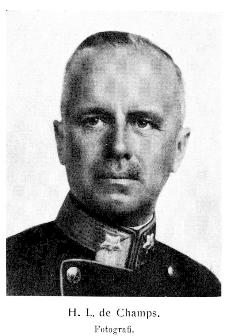 1. Henri Leopold de Champs, f. 21 juni 1869 i Stockholm. Föräldrar: löjtnanten, slutligen kommendörkaptenen Charles Eugéne de Champs och Eva Charlotta Skytte af Sätra. Åtnjöt enskild undervisning; elev i Praktiska arbetsskolans för barn och ungdom (sedermera Palmgrenska samskolan) arbetsavdelning 1878, i läsavdelningen vt. 1879; avlade mogenhetsexamen såsom privatist vid högre realläroverket å Norrmalm i Stockholm 18 maj 1887. Volontär vid Svea ingenjörbataljon 2 mars 1888; sergeant 11 juni 1889; elev vid krigsskolan å Karlberg 1889; avlade officersexamen 25 okt. 1890; underlöjtnant utan lön i fortifikationen 7 nov. 1890; placerad vid Svea ingenjörbataljon 11 nov. 1890—30 apr. 1892, vid Göta ingenjörbataljon 1 maj 1892—2 okt. 1895 samt vid fortifikationens huvudstation (truppavdelningen) från 3 okt. 1895; erhöll årligt arvode motsvarande underlöjtnants lön och dagavlöning 27 nov. 1890 samt underlöjtnants lön 15 maj 1891; elev vid artilleri- och ingenjörhögskolan 15 juli 1892—30 apr. 1895; löjtnant av andra klass vid fortifikationen 17 maj 1895 och av första klass 11 mars 1898; aspirant vid generalstaben 15 okt. 1895; placerad å Svea ingenjörbataljon 1 nov. 1898; stabsadjutant och löjtnant vid generalstaben 2 febr. 1900; kapten vid generalstaben 12 aug. 1903; erhöll lön som sådan 4 dec. 1903; lärare i militärgeografi vid krigshögskolan 1 okt. 1905—30 sept. 1911; kapten av första klass vid fortifikationen 9 okt. 1908; placerad å Svea ingenjörkår 13 okt. 1908; chef för dess tredje kompani 1 nov. 1908—22 dec. 1910; överadjutant och major vid generalstaben 23 dec. 1910; avdelningschef vid dess tekniska avdelning 5 febr. 1912—10 okt. 1914; överadjutant och överstelöjtnant vid generalstaben 21 nov. 1913; tf. chef för Bodens ingenjörkår 16 okt. 1914; Överstelöjtnant vid fortifikationen och chef för samma kår 19 febr. 1915; ånyo överadjutant och överstelöjtnant vid generalstaben 5 nov. 1915 men kvarstod som tf. chef för Bodens ingenjörkår 5 nov. 1915—30 sept. 1916; överste vid generalstaben 19 maj 1916; avdelningschef vid dess topografiska avdelning och chef för rikets allmänna kartverk 19 maj 1916—31 dec. 1919; överste vid fortifikationen samt fortifikationsstabsofficer och chef för fortifikations-staben 1 jan. 1920; generalmajor och chef för fortifikationen 24 apr. 1923; generallöjtnant 25 apr. 1930. — Elev vid gymnastiska centralinstitutet 15 sept.—14 okt. 1895 och vid infanteriskjutskolan å Rosersberg 12 juni—20 aug. 1902; deltog i okulär undersökning av Inlandsbanan 15 juli—18 aug. 1903; avdelningschef vid generalstabens topografiska avdelnings fältarbeten i Medelpad och Ångermanland maj—sept. 1904; bevistade norska generalstabens fältövningar vid Lyngen, Bardö och Narvik 27 aug.—10 sept. 1904; ledamot av krigsbefälet såsom representant för generalstaben vid dess sammanträde okt. 1907; studerade den trådlösa telegrafien i England och deltog i konferens för densamma 31 maj—22 juni 1912; ledamot i Svenska röda korsets överstyrelse 14 nov. 1913— okt. 1914 och ånyo från 3 nov. 1916; ledamot i kommittén för planläggning av vissa fasta radiostationer 14 apr. 1914—15 apr. 1915 och var därefter förordnad att som sakkunnig biträda vid nämnda anläggningars utförande 16 apr. 1915—1920; ledamot (i chefens för generalstaben ställe) av krigsundervisningskommis- sionen 29 dec. 1916—8 sept. 1919; ordförande i krigsundervisningskommissionen från 25 apr. 1930; förordnad 9 maj 1931 till ordförande vid fullmäktiges i arméns pensionskassa sammanträde nov. 1931. — Har, vid sidan av upprepade kortare kommenderingar till trupptjänstgöring, i olika ställningar deltagit i ett mycket stort antal fält- och fälttjänstövningar; ledde fortifikationens fältövningar 26 aug.—1 sept. 1928. — En av grundarna av Föreningen för Stockholms fasta försvar samt ledamot av dess styrelse och dennas verkställande utskott från föreningens stiftande okt. 1902 (v. ordförande från 18 mars 1924); ledamot av styrelsen för Drottning Sofias förening till understödjande av härens och flottans sjukvård 1906—15; andre v. ordförande i kungliga automobilklubben 1914— 24 apr. 1925 och förste v. ordförande från 25 apr. 1925; ledamot av styrelsen för Svenska sällskapet för antropologi och geografi 1917—29 (v. ordförande 1918, ordförande 1919); ledamot av styrelsen för a.-b. Nynäs kuranstalt 25 mars—31 maj 1918; ledamot av styrelsen för livförsäkrings-a.-b. Victoria från maj 1922; en av stiftarna av a.-b. Johanneshöjden 1923 och ledamot av dess styrelse samt ordförande i densamma från 14 jan. 1924; ledamot av överstyrelsen för föreningen Sveriges flotta från 30 apr. 1928. RSO 1911; RNO 1917; LKrVA 1917; KSO2kl 1919; erhöll Svenska frivilliga sjukvårdsväsendets förtjänstmedalj i guld 1919; KFinlVRO2kl 1920; KSO1kl 1922; KFinlVRO1kl 1926; KNS:t001kl 1928; GV:sJmt 1928; KmstkSO 1930; innehar ytterligare utländska ordnar samt såväl in- som utländska förtjänsttecken.