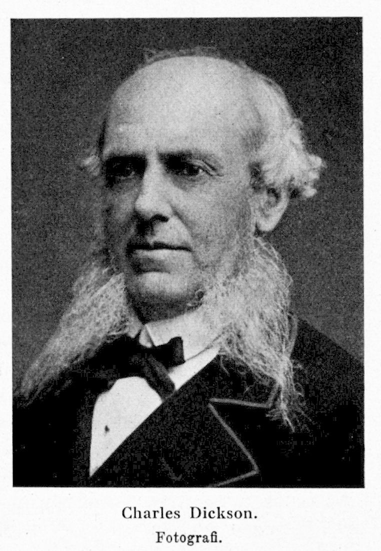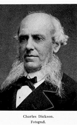 4. Charles Dickson, den föregåendes broder, f. 28 jan. 1814 i Göteborg, d. 1 april 1902 i Stockholm. Studerade vid Göteborgs handelsinstitut 1826—30; utex. från Chalmers tekn. inst. 1830; studentex. i Uppsala 7 okt. 1830; med. fil. kand. 8 dec. 1832, med. kand. 12 dec. 1835, med lic. 23 maj 1837, med. doktor 6 juni s. å.; sjukhusläkare vid Sabbatsberg under kolerafarsoten i Stockholm 1834; vetenskapliga resor till Halle, Wien, Mönchen, Zürich, Paris, London, Edinburgh 1837—40; kir. mag. 29 okt. 1840; praktiserande läkare i Göteborg 1840—59; tf. bataljonsläkare vid Göta artillerireg. 1840—45; led. i fattigvårdsstyr. 1848—64, därav som ordf. 1851—62; led. av sv. läkaresällsk. 1857, led. i hospitalsdirektionen 1860—81; ordf. i folkskolestyr. 1867—72, i stadsfullmäktige 1863—82; flyttade till Stockholm 1884; kommitterad för Internationella, välgörenhetskongressen i Bryssel 1856; organisatör av sådan kongress i Stockholm 1857; regeringsombud vid kongress i London 1862 »för de sociala vetenskapernas utveckling»; jury led. vid internationell konferens i Paris 1867 för arbetarklassens förkovran; medlem av kommittén för ny fattigvårdslagstiftning 1867; led. av riksdagens första kammare 1867—72 och 1886—95, av dess andra kammare 1873—86. LVVS 1848, sekr. där 1859—68, ordf. 1868— 1869 och 1878; RVO 1853; RCXIIIO 1858; KVO 1860; HedLVVS 1875; KNO1kl 1884; med. jubeldoktor i Uppsala 31.maj 1887.